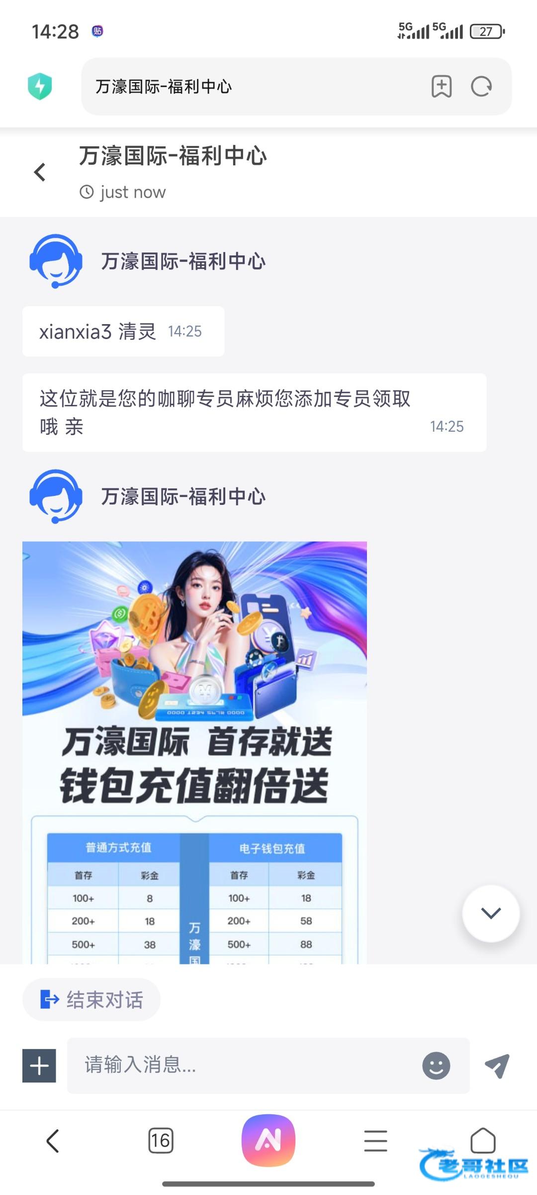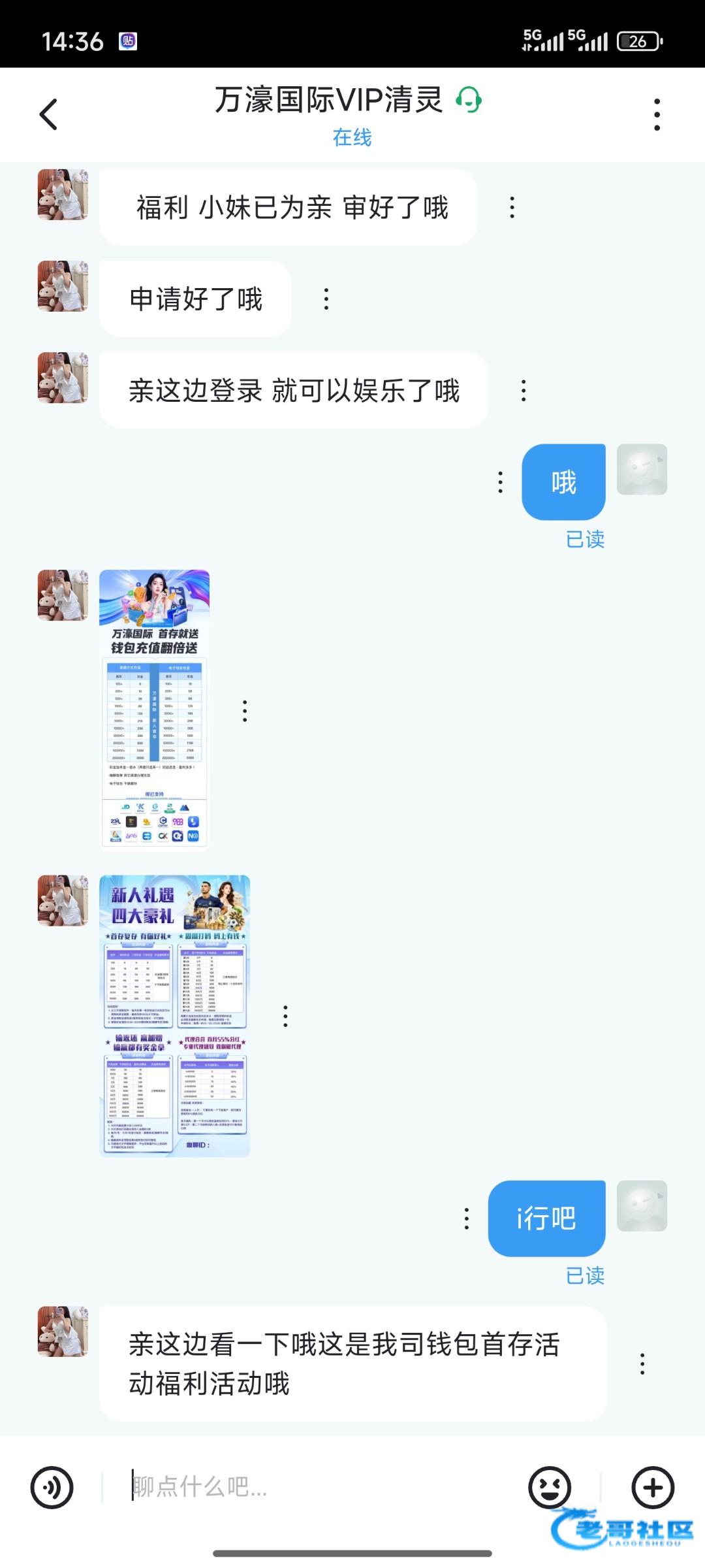 送88电话链接5550017.com联系客服,说领取电话体验金把手机号发她,然后注册一个账号,邀请码填写他给的就行,然后让你下载聊天app去领取彩金,不要充值,白嫖就好,黑了别他妈逼逼!