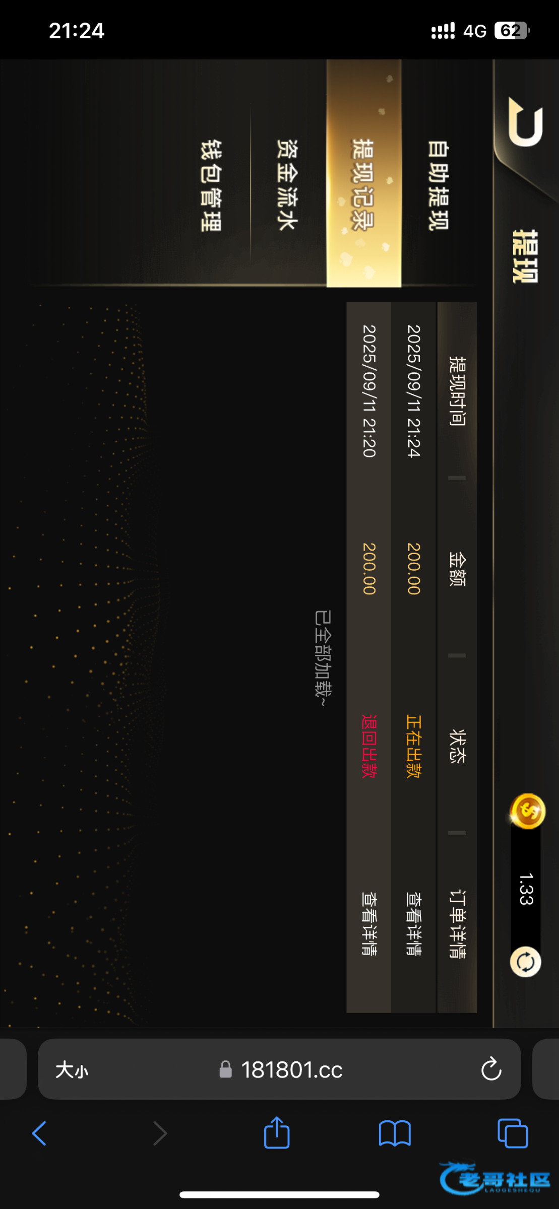 提现100失败,黑了不用去了