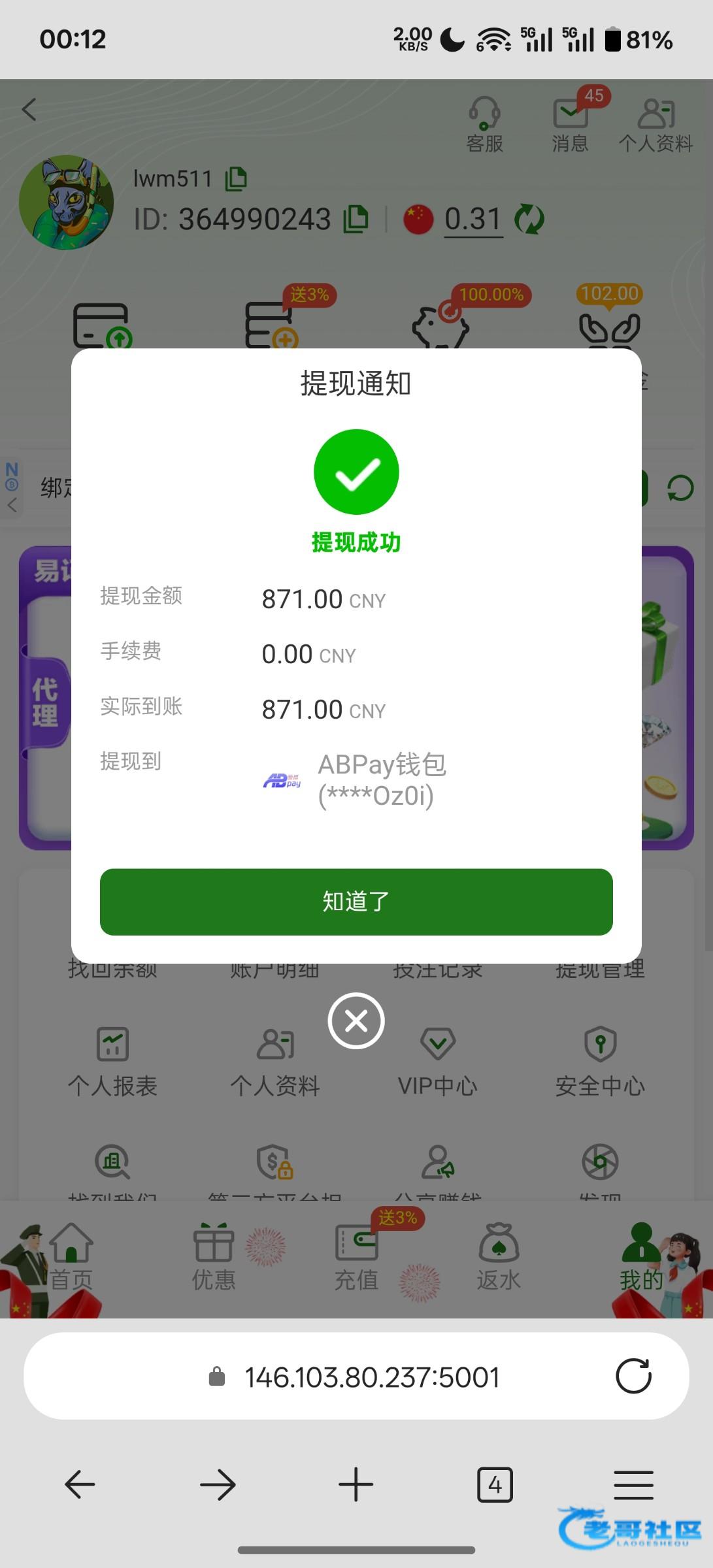 提现挺快,这个系列有三个台,还打了个4747等会看看能不能打出来,888不让注册了