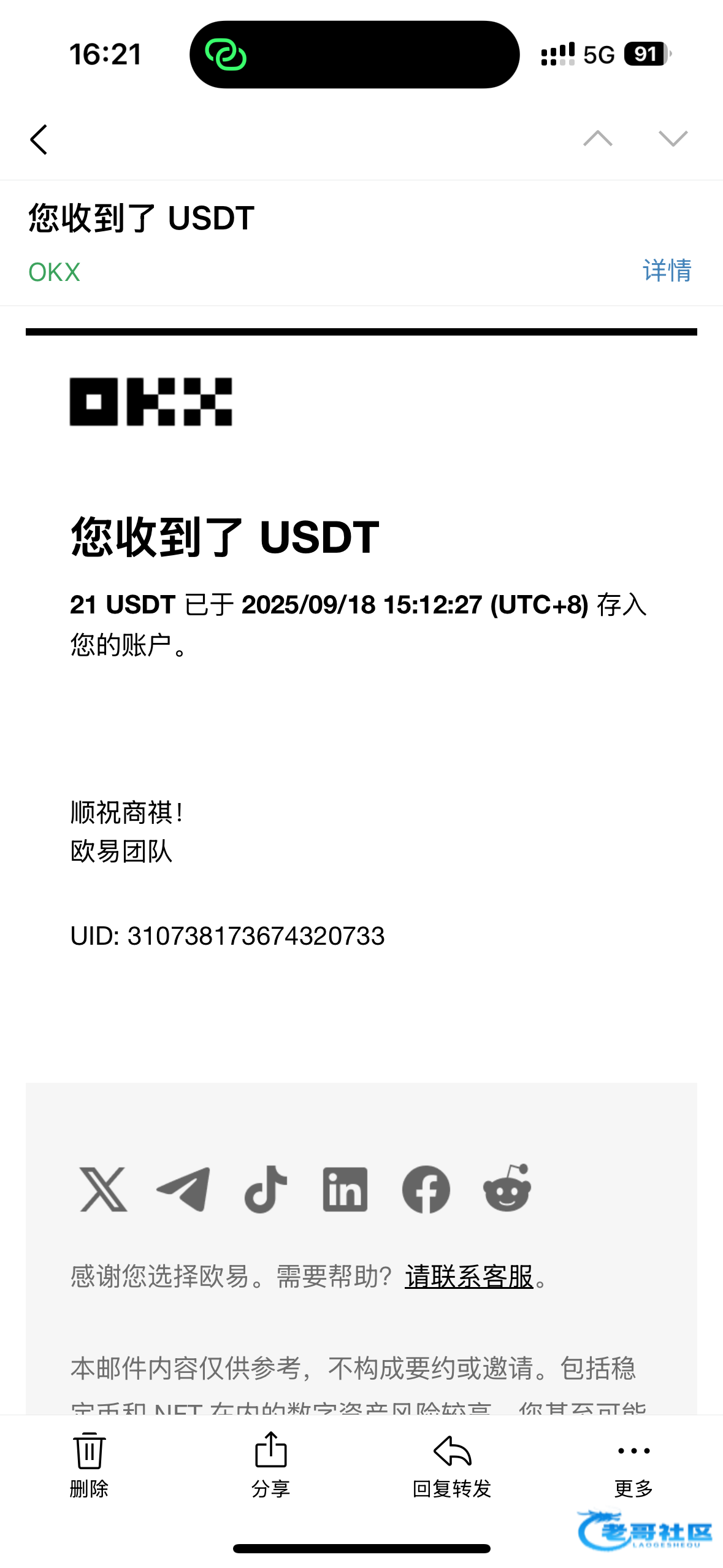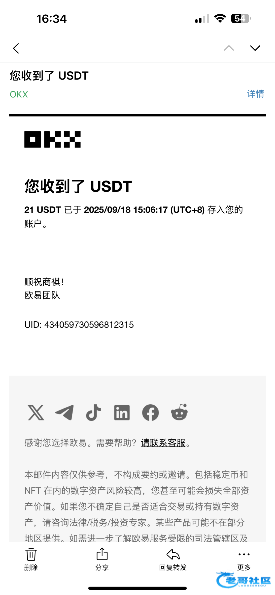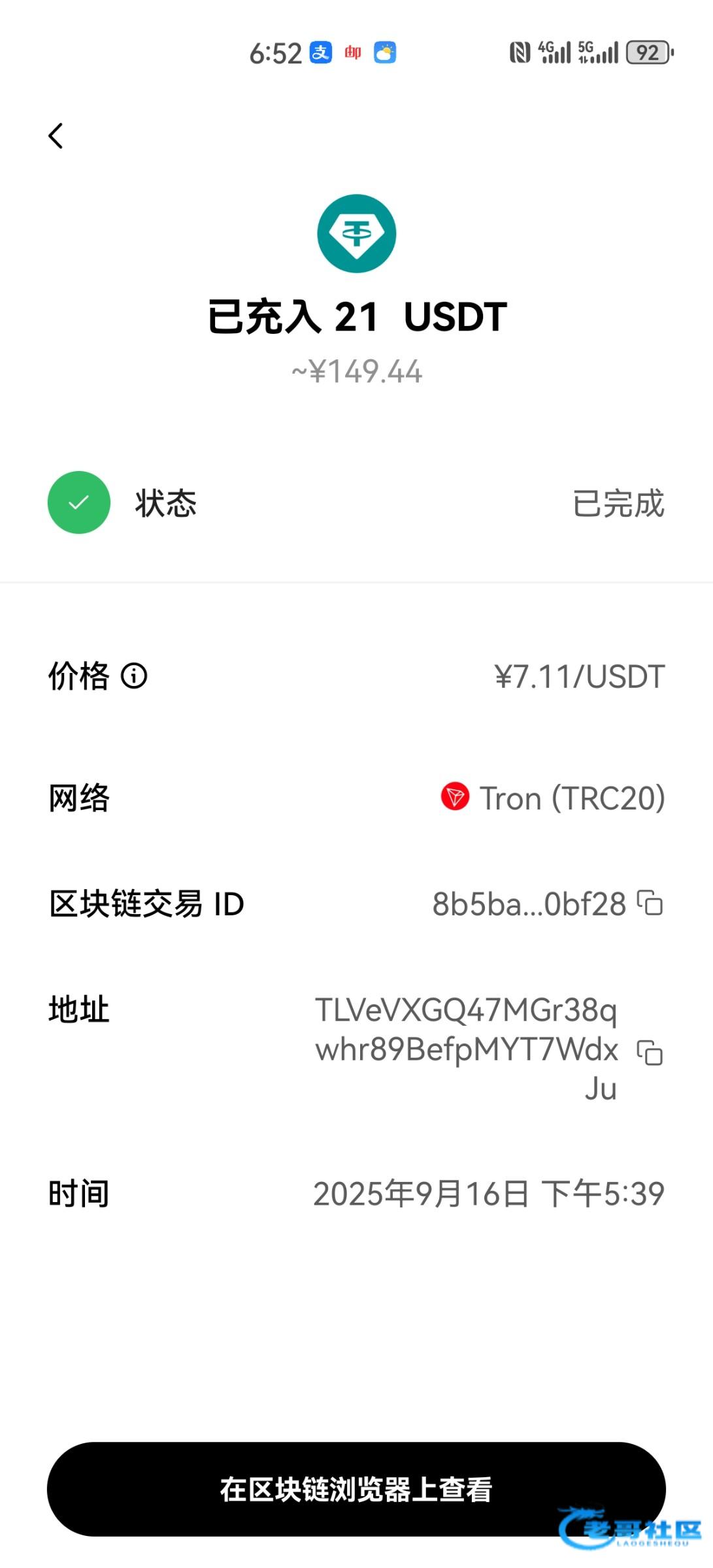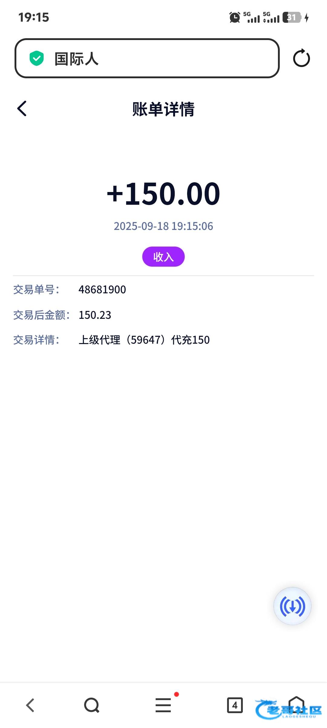 收到老哥返现