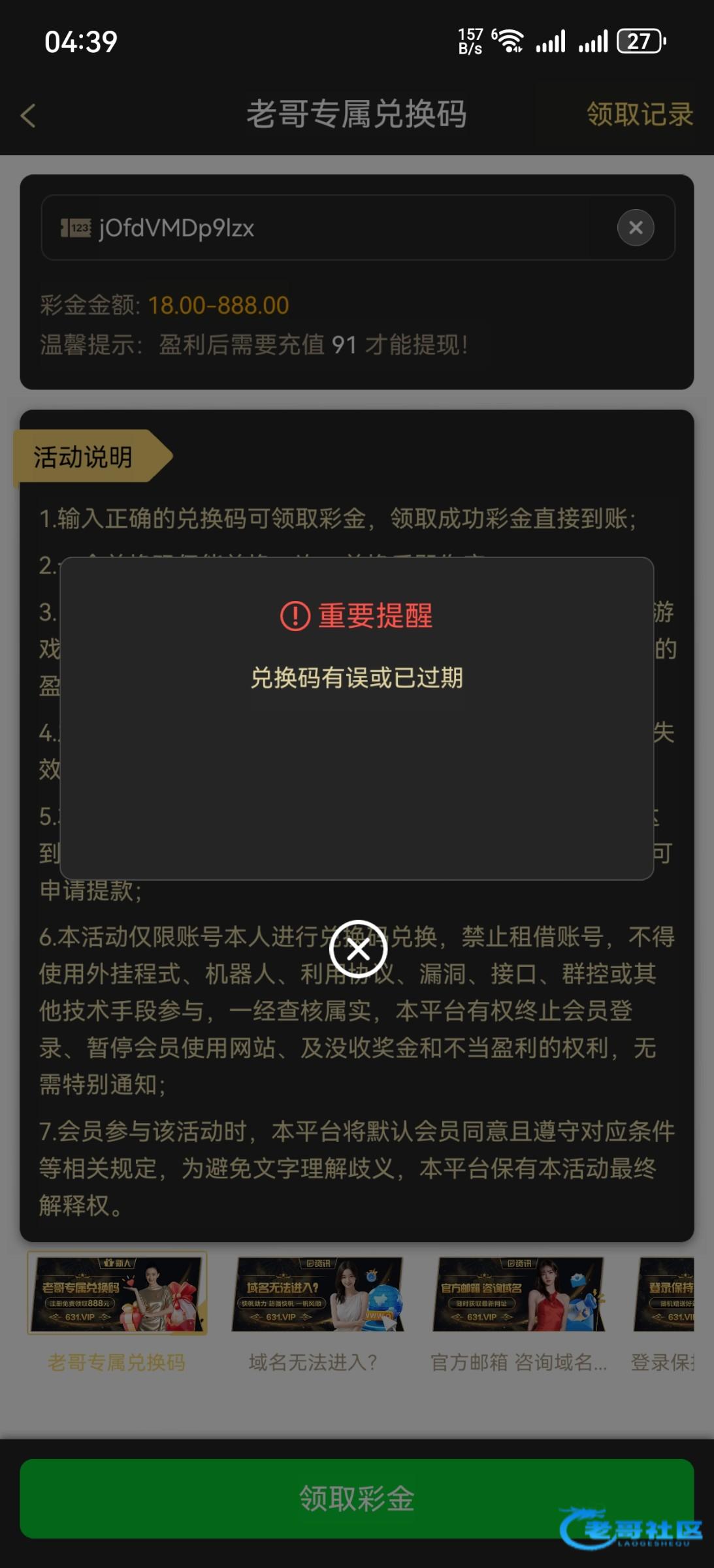 浪费半天时间去下载APP然后进去结果告诉我兑换码有误,垃圾