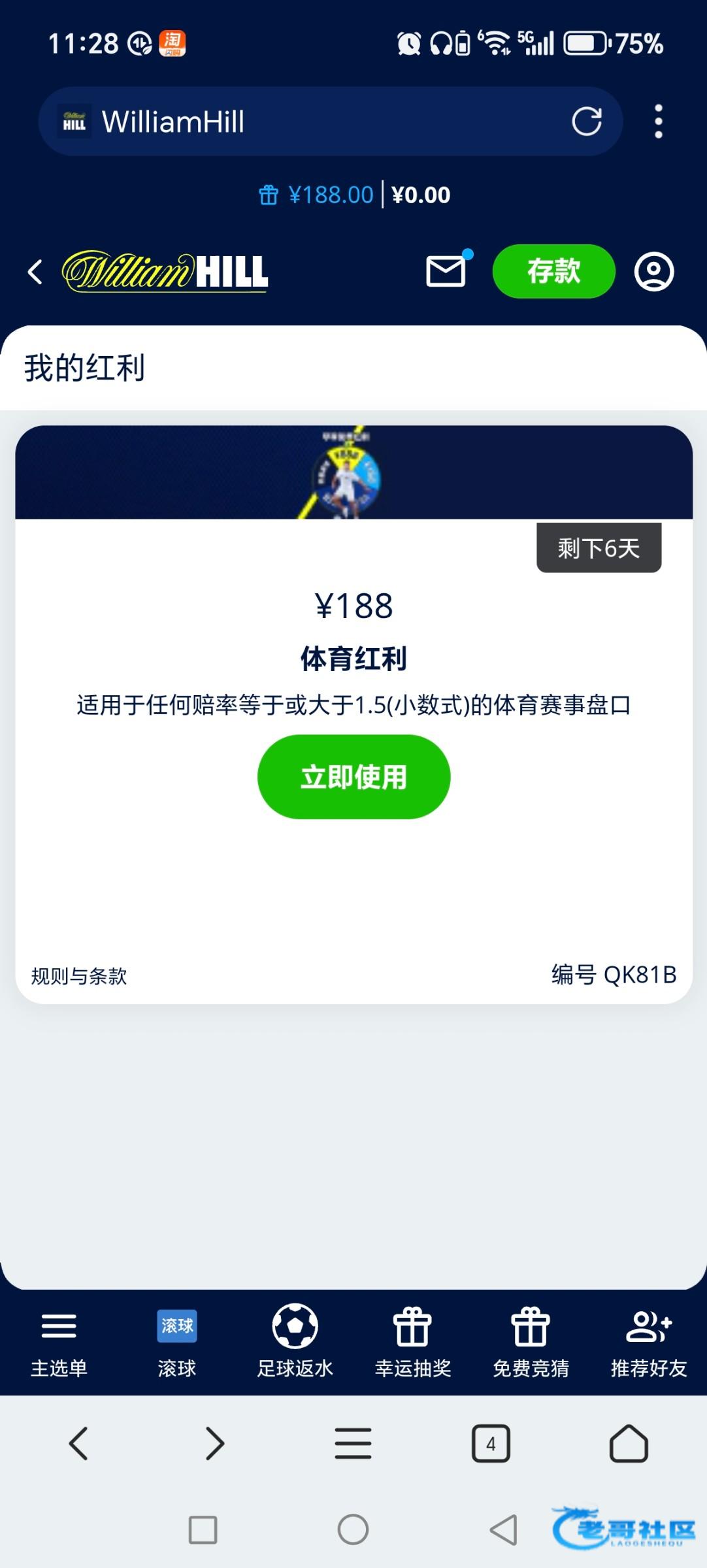 威廉没注册过的去抽奖白嫖18 88 888我太黑了抽了18 链接https://www.williamhill7679.com
