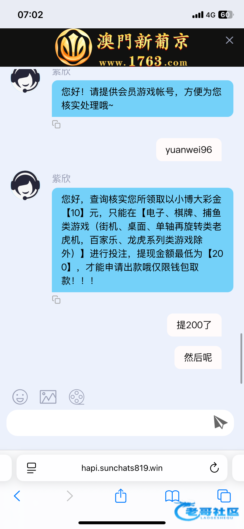 10➕10来回拉扯 提200他说你有个17彩金只能提170。提170他说你参与以小博大只能提200。问客服每次都是人多取款在排队。来回拉扯无限理由退回。恶心避雷