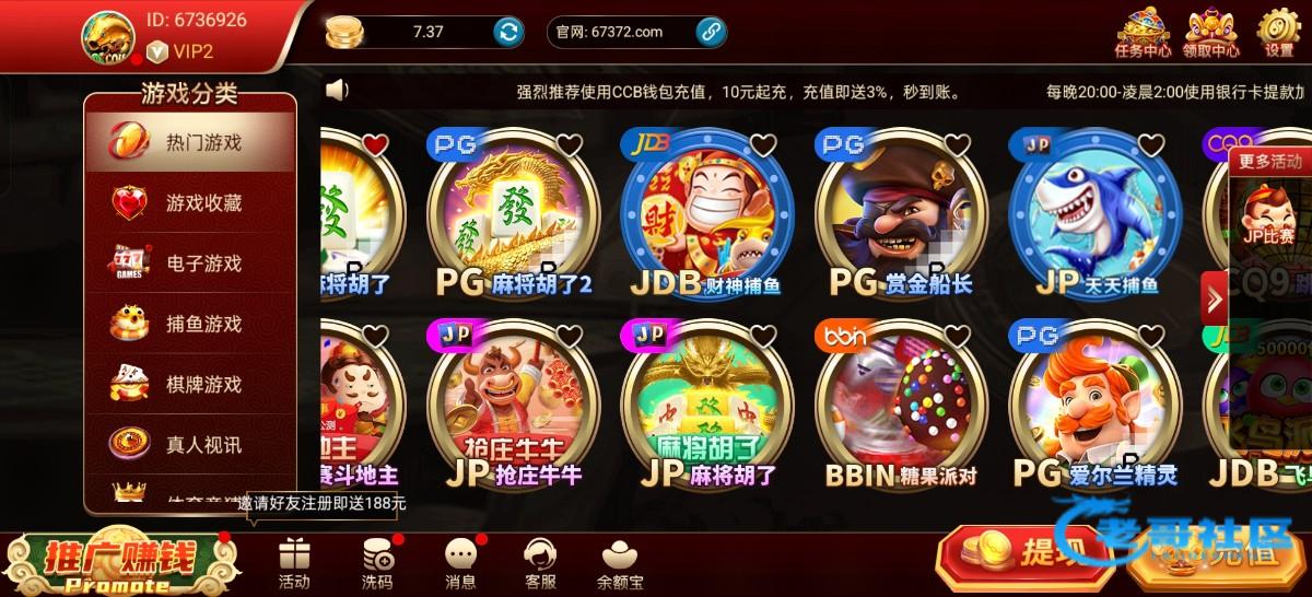 顶级系列有号的,有过存款的去看看!连送7天,我刚才登录送了6元!67381.com