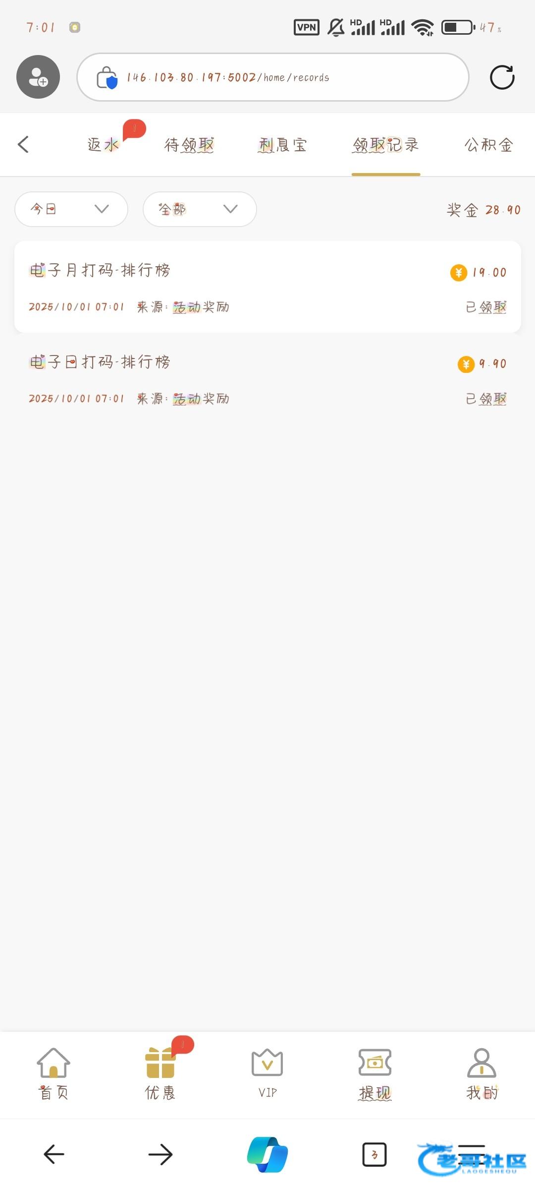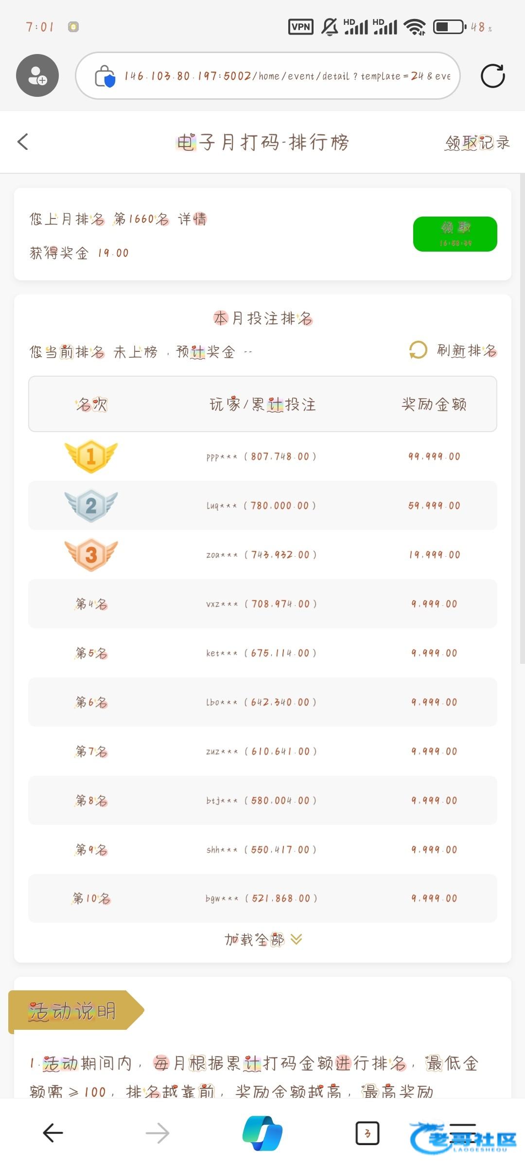 前两天领到58彩金或者充值的打码有个100左右都能领到日打码和月打码,我没充值过我也是领到58彩金打的100多流水就领到了,在待领取里面看,白嫖即可误充值,网址是aaa.cc