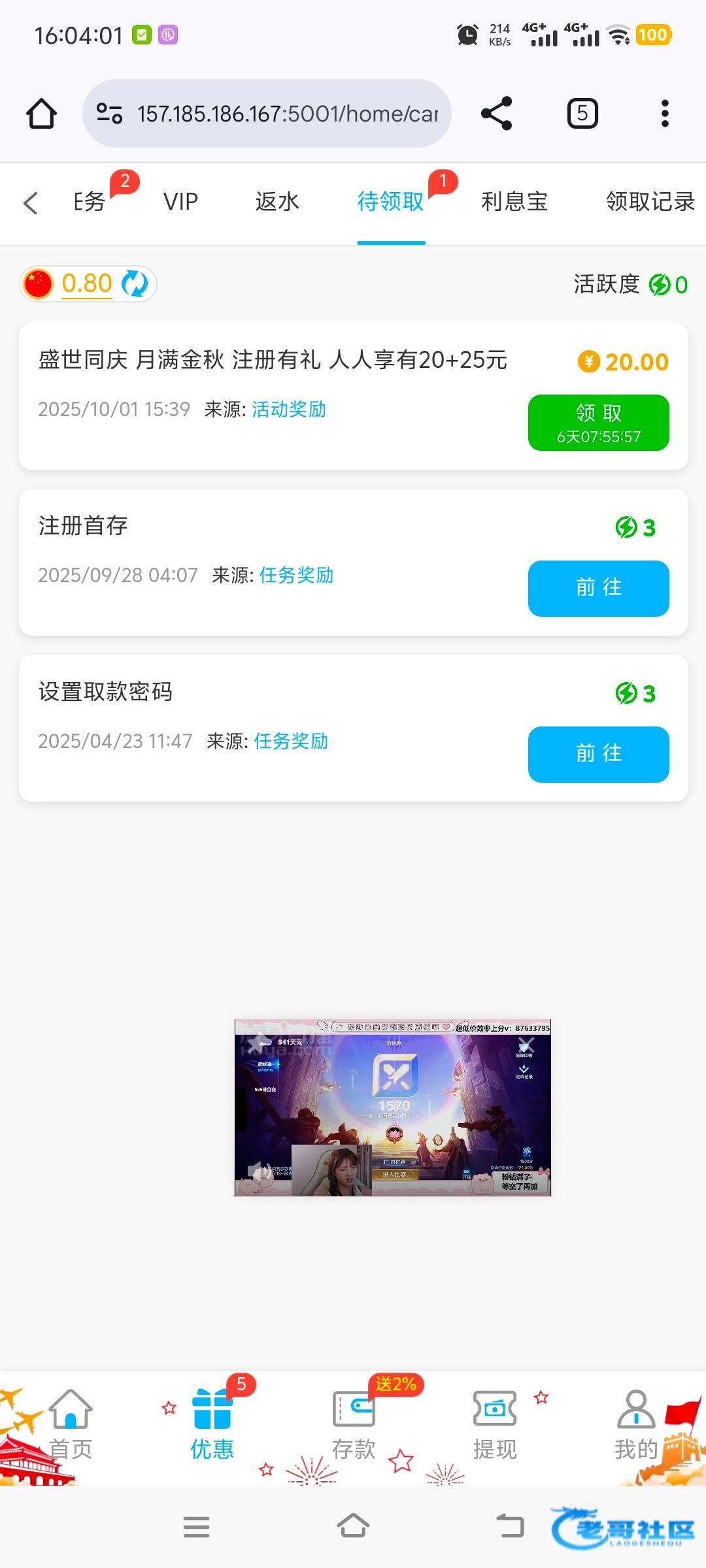 前几天有老哥发过的,中午14点之后派送,有账号的等一下可以上去看看网址6138.com