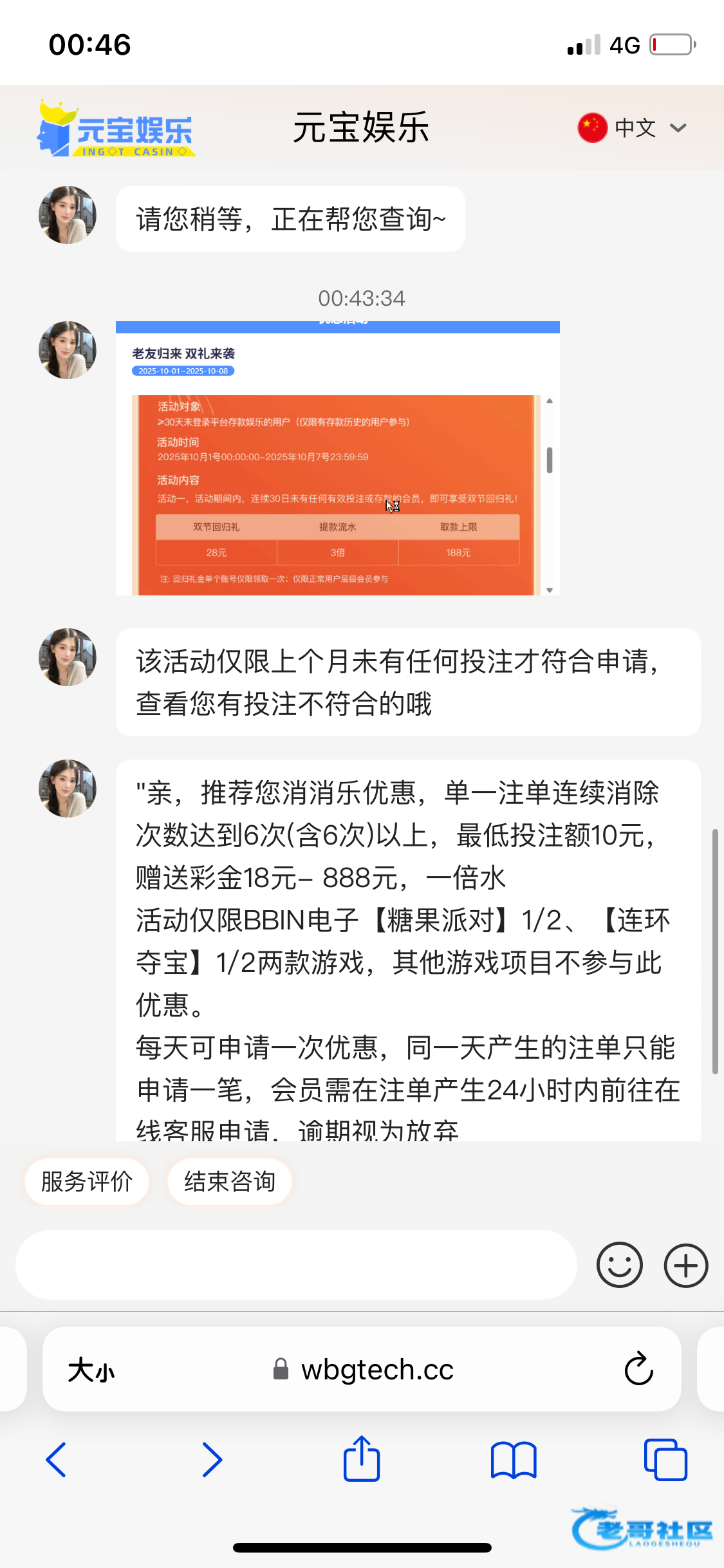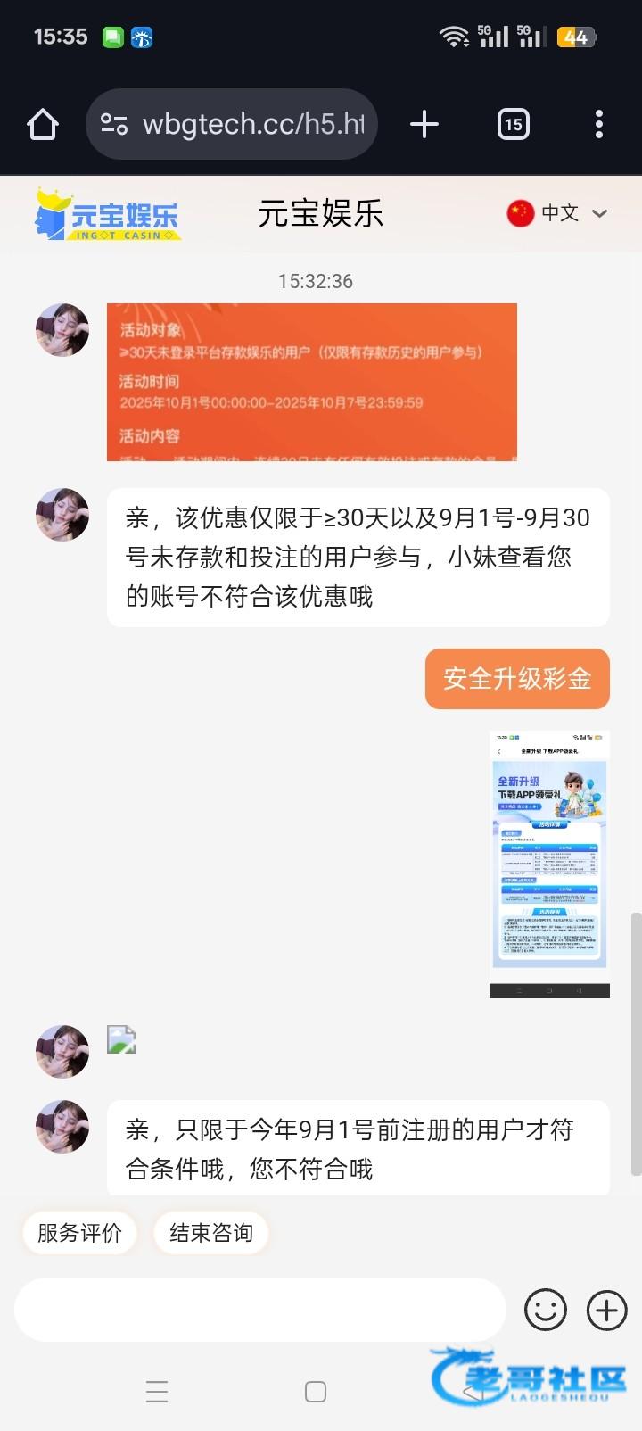 客服搁着和我玩文字游戏 各位老哥大概是9.4 9.5两天领取的升级彩金吧好像是 现在可以领国庆的了 28元上限188 网址388yb.cc