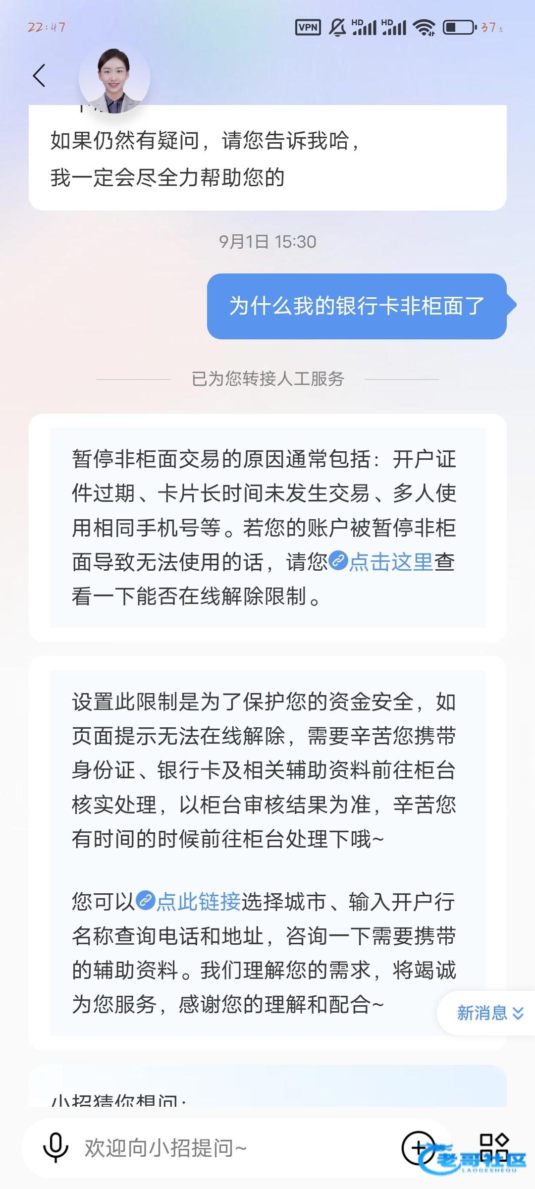 小搁 ▶ 小嫖 你的还没好? 我的也这样,我联系客服了说没时间去不了距离银行100多公里,他说3到5天给答复核实什么的 8天前