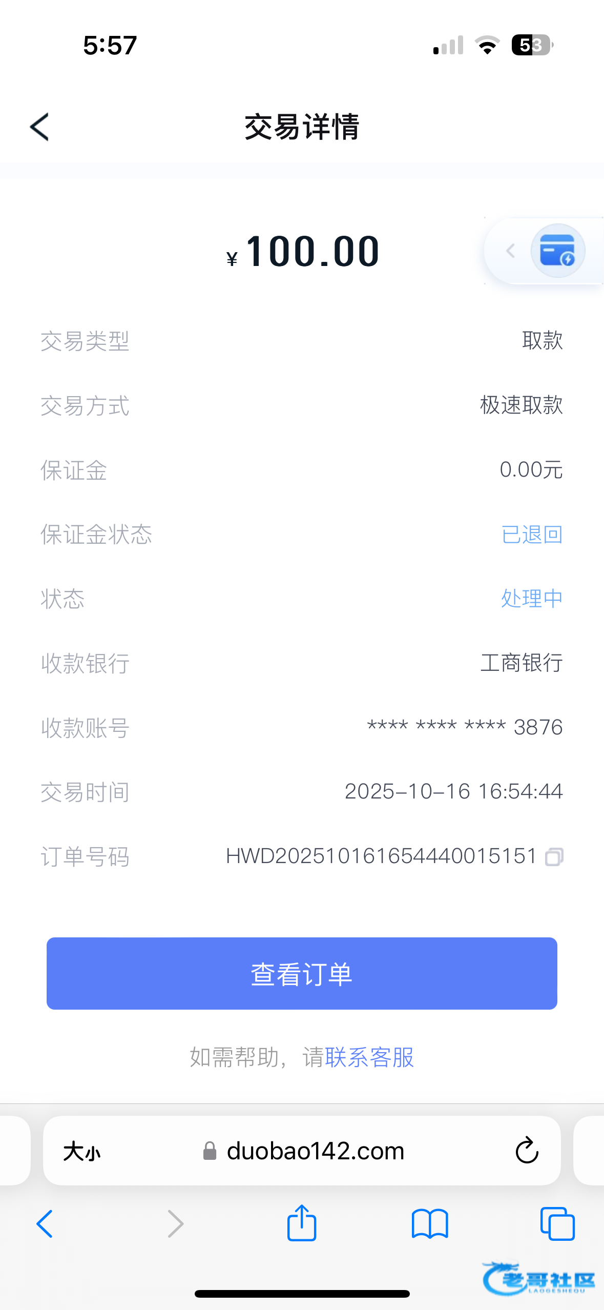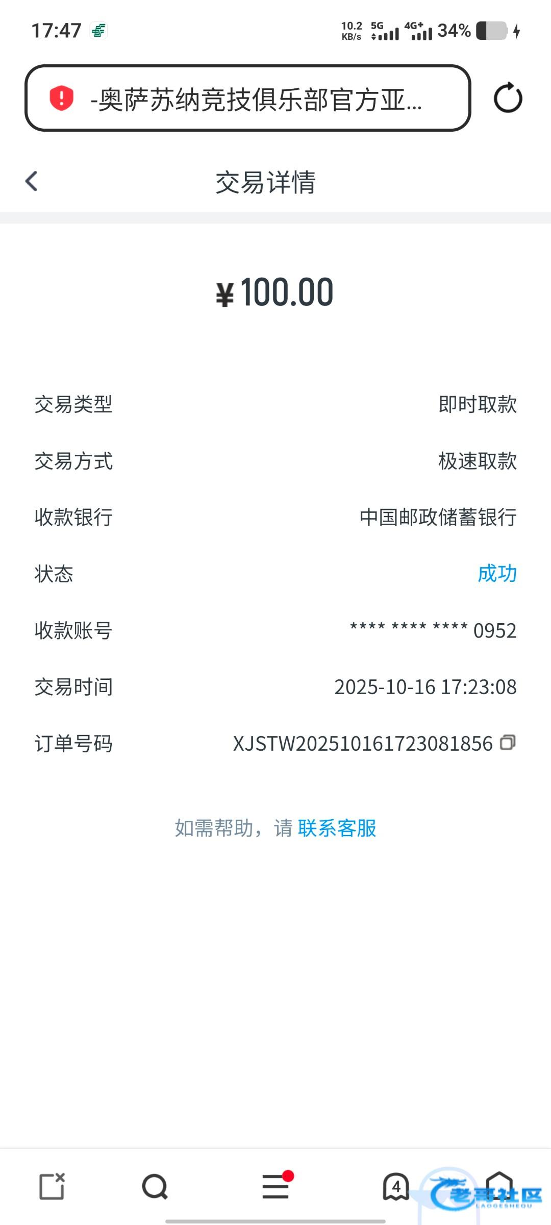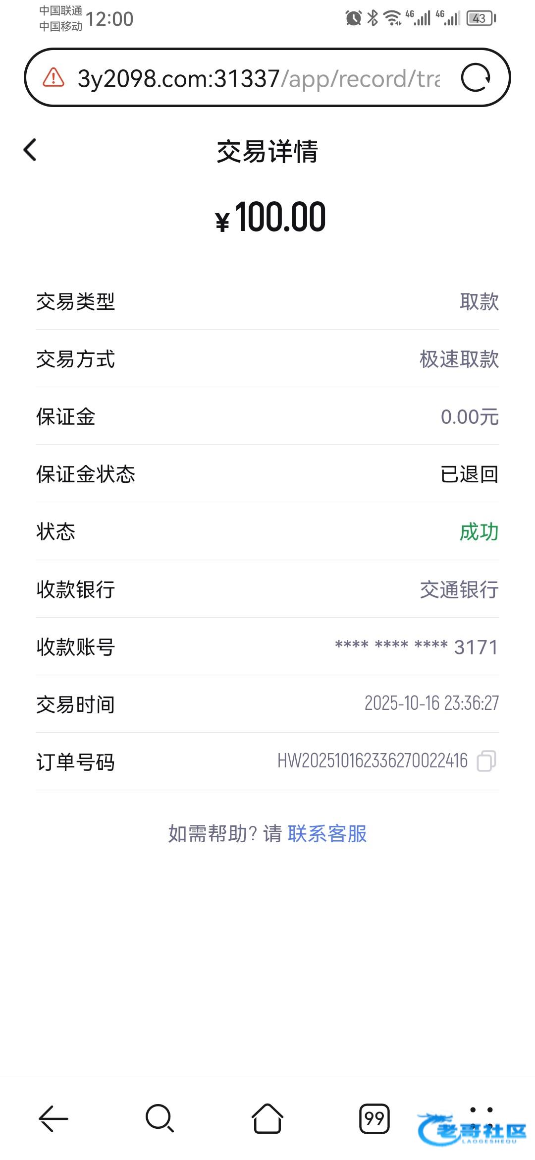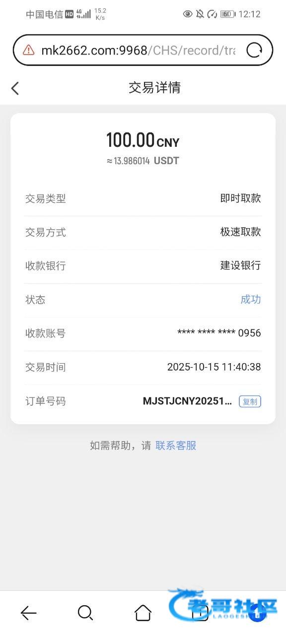 天博出了100 唯一出的一次 之前都是封号,这次我提现后拉了一笔200的订单,没想到给我到账了,就是提u手续费有点坑,100到手84