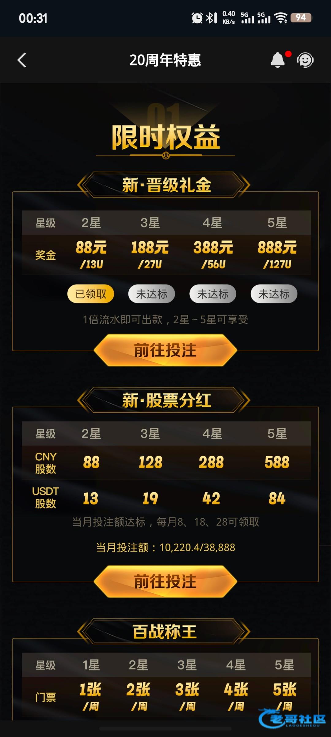 凯发20年,有星级的可以领取晋级礼金,我领了88,一把挂壁。ps:这是个畜牲杂种台,千万别充值,就今年老子输20万,杀的跟他妈傻逼一样,都没打到100万流水,司马台。