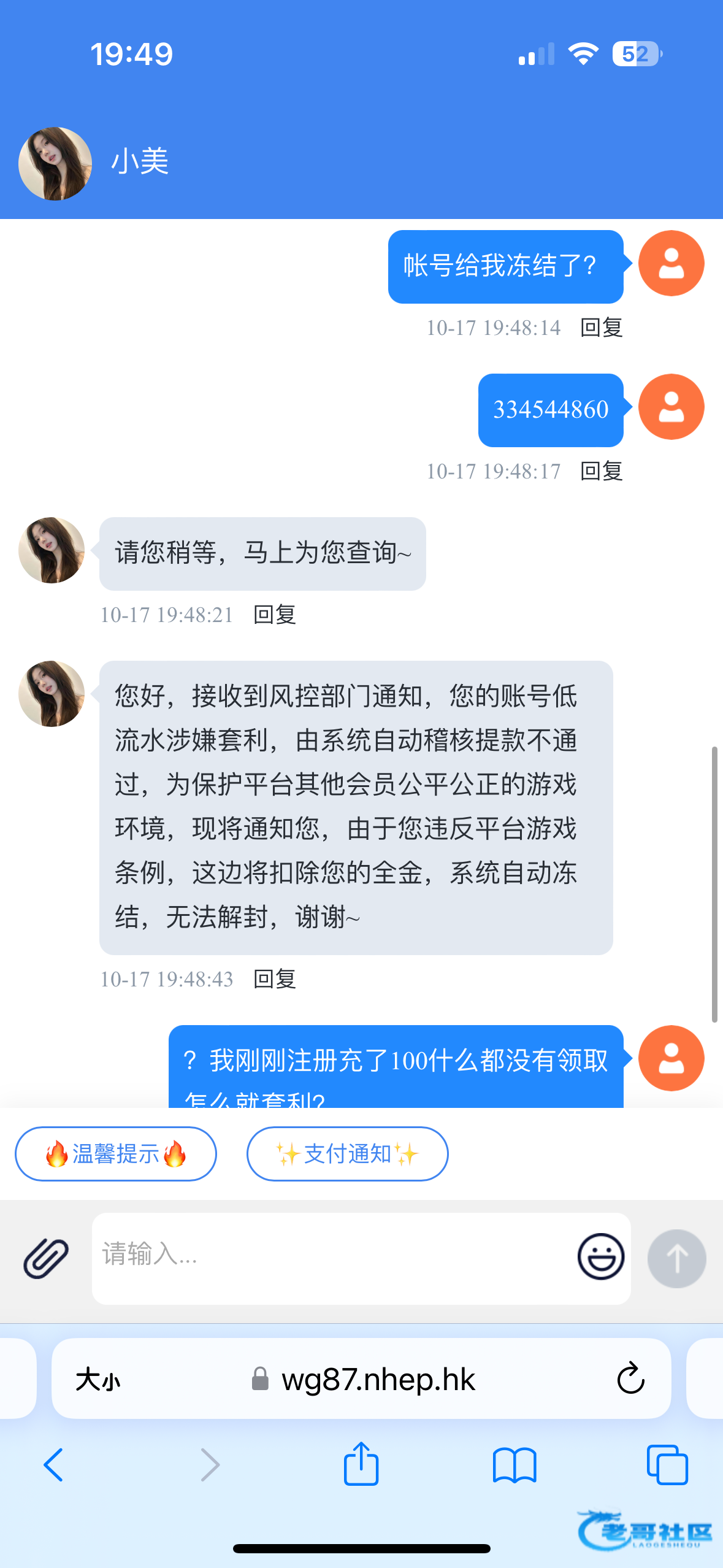 充了100玩到300提现给我冻结 我什么彩金都没有领取说我套利 纯纯穷逼平台