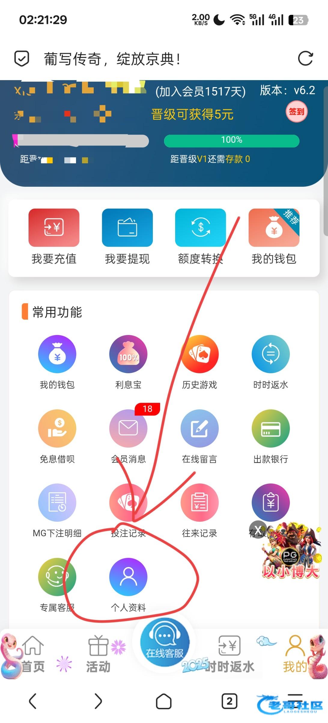 在我的—个人资料里面绑