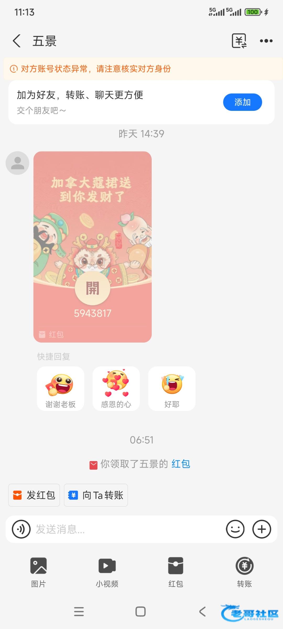 收到红包了,一把没