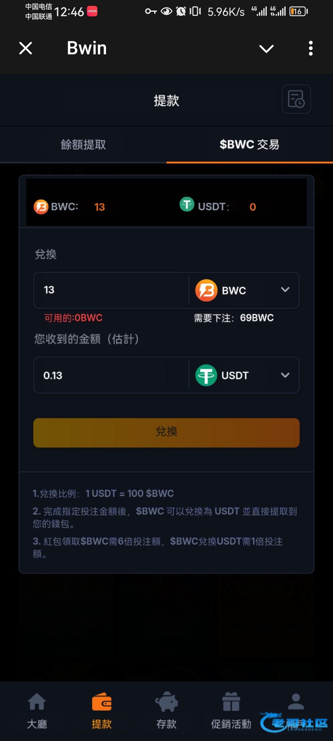 100个BWC才兑换1USDT