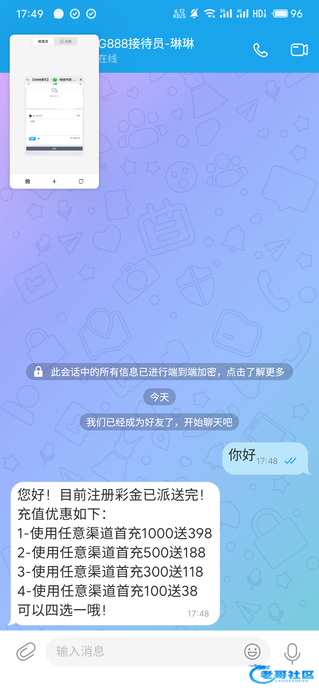 微信加我说注册就送,注册完就领取到了,老哥们可以看一下,网址:g882.org