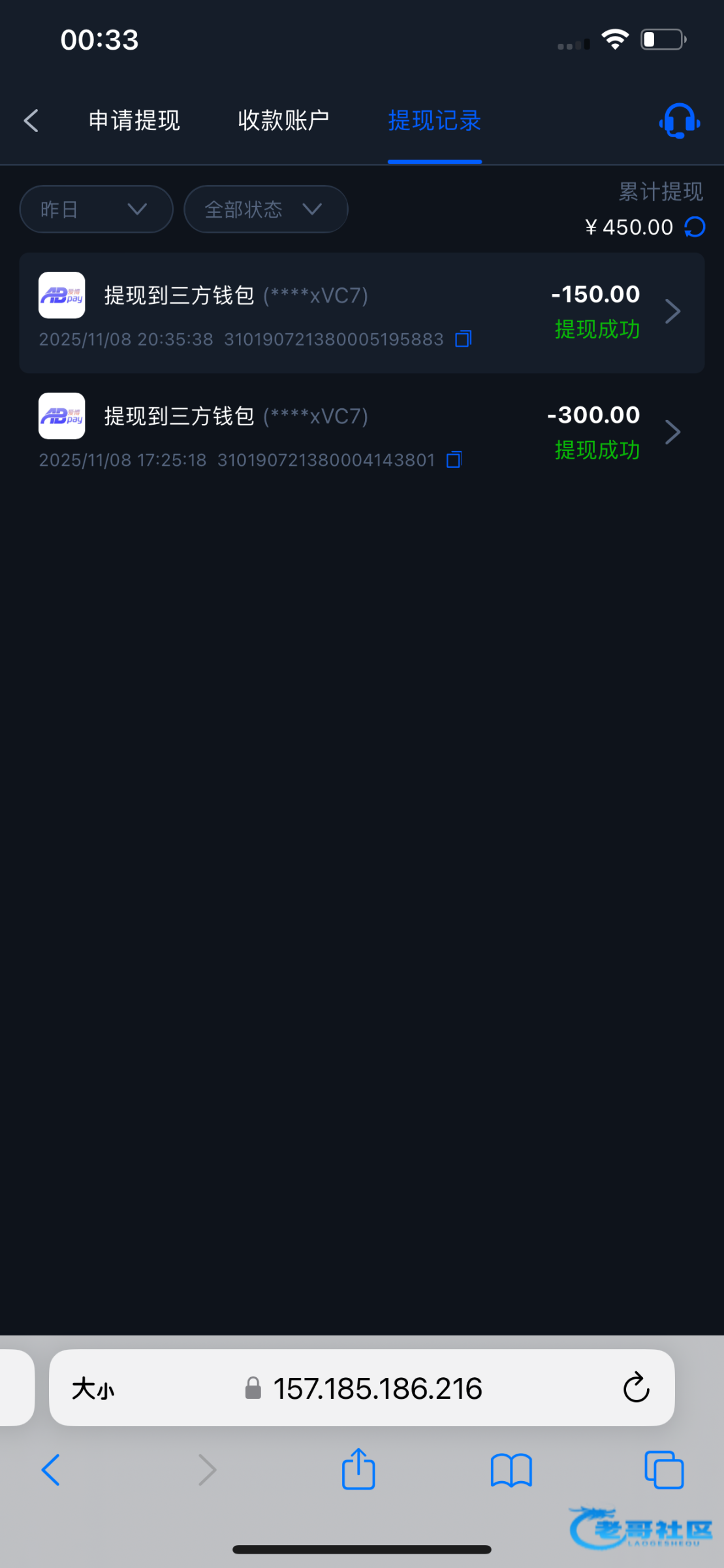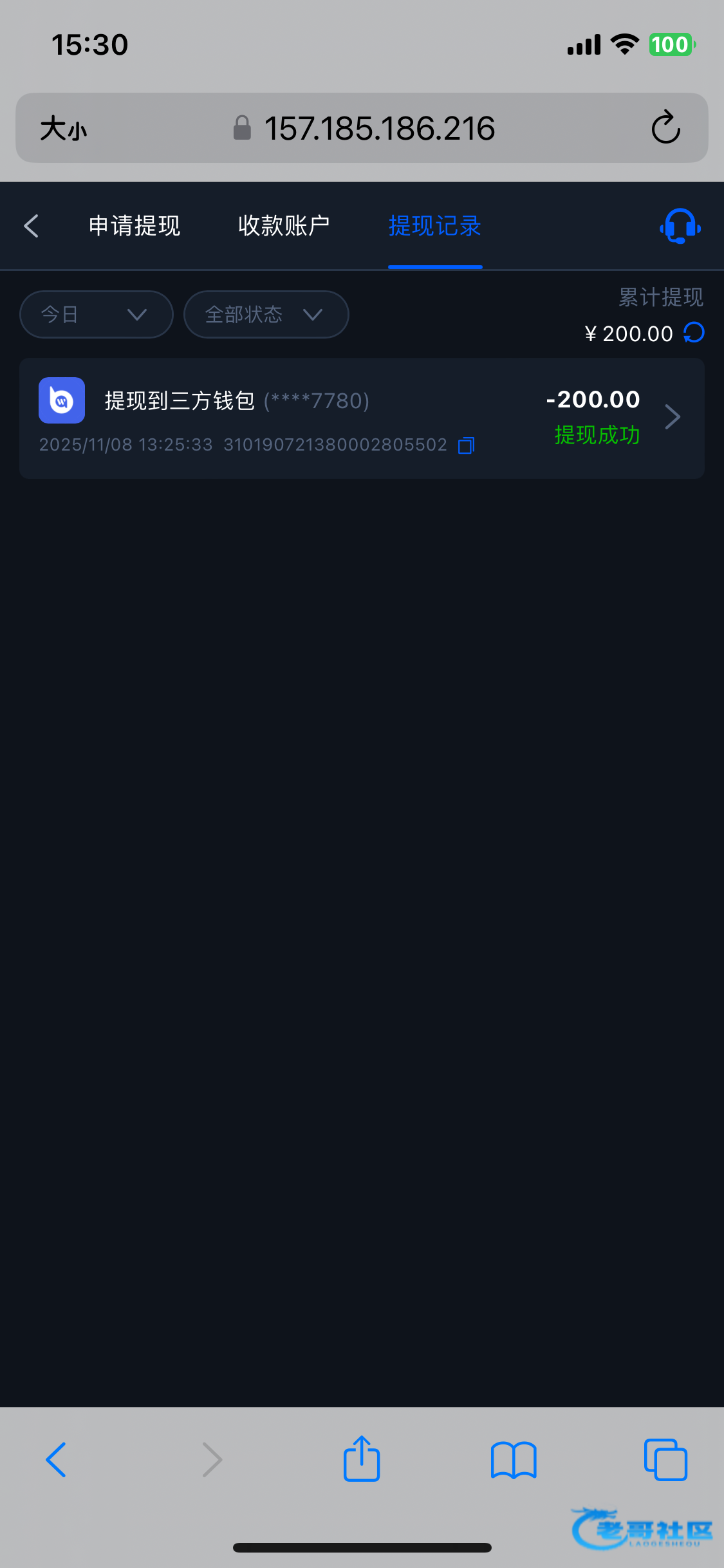 提现成功