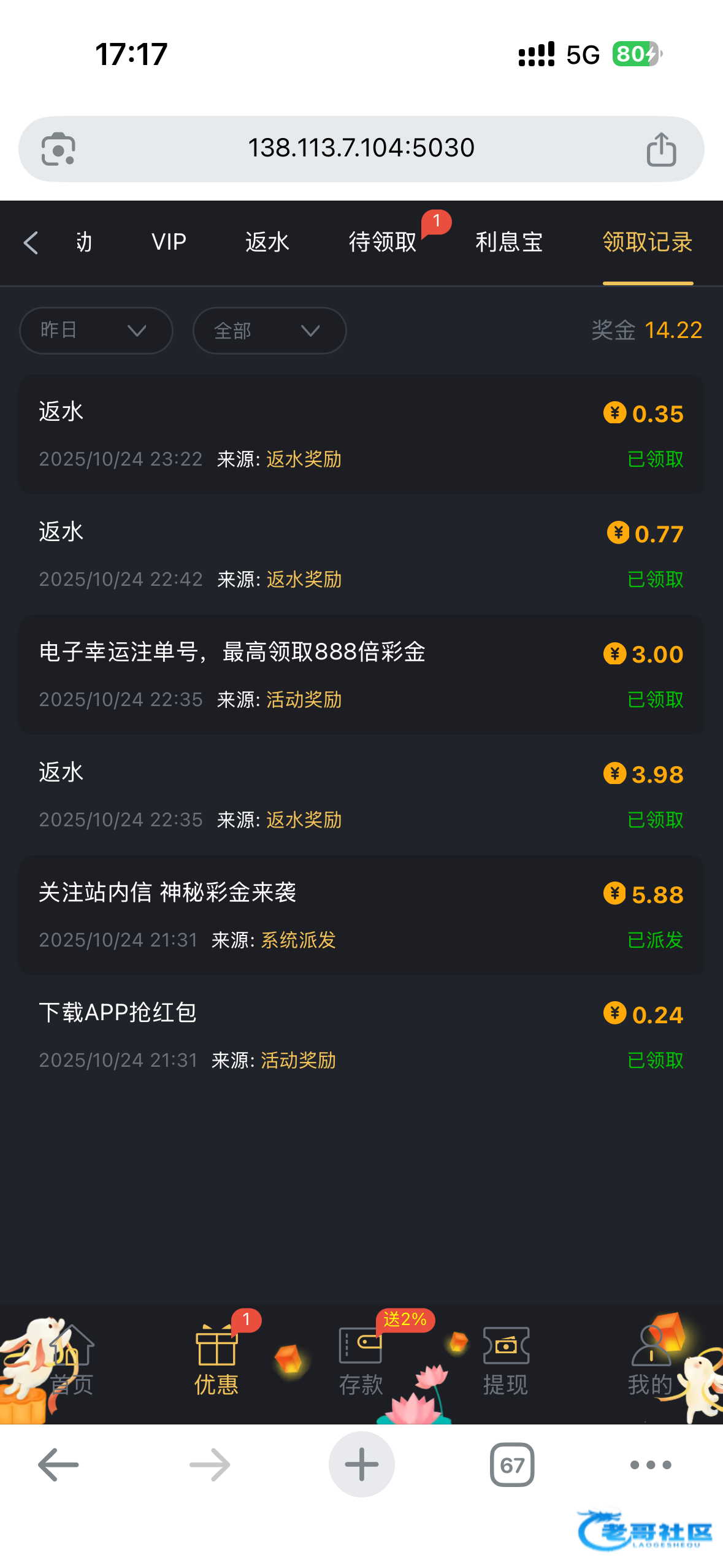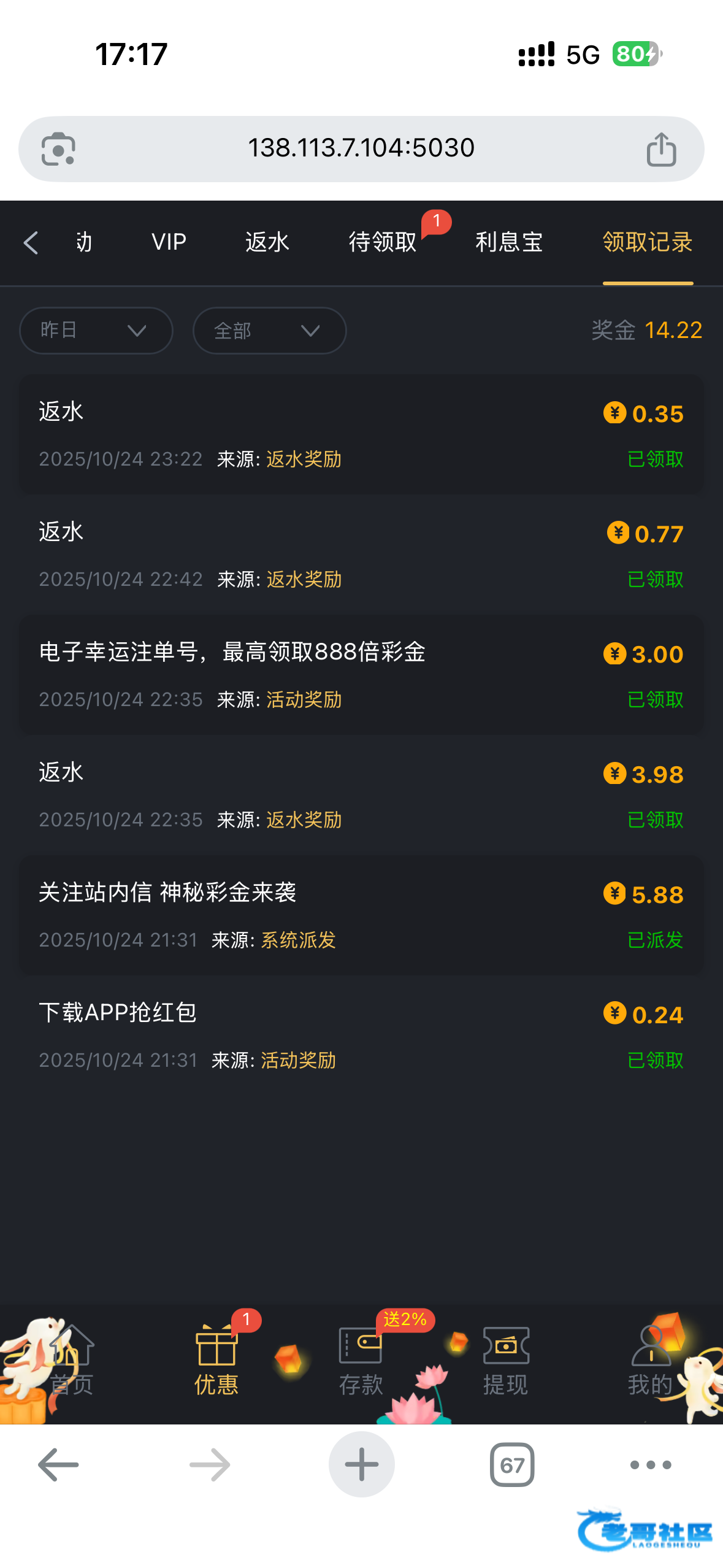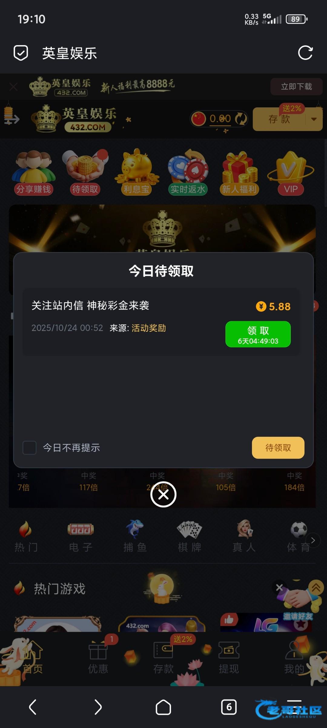 好久没登录应该都有 我就是好久没登录了 昨天上去看到有彩金链接432.com
