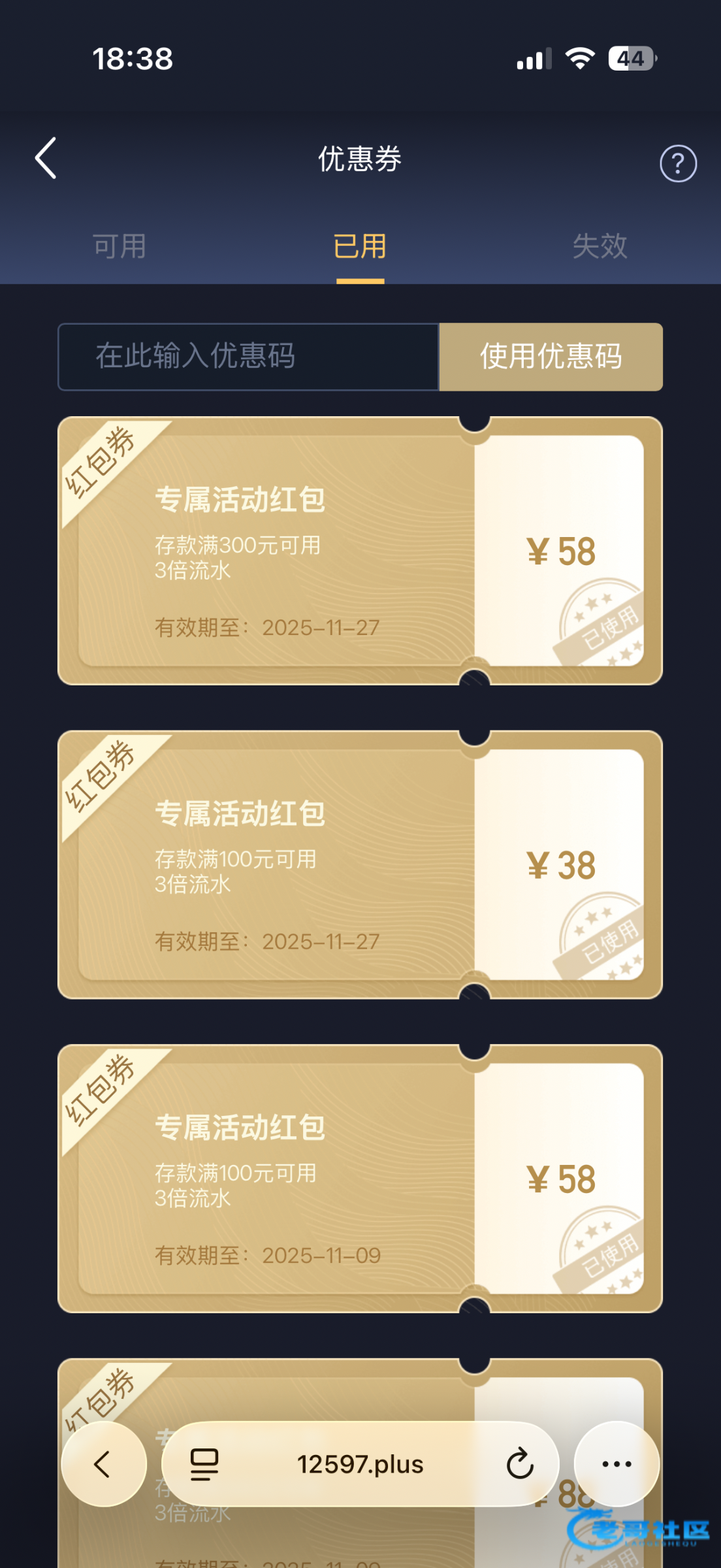 我的58+88的卷没打出来还倒贴400本金