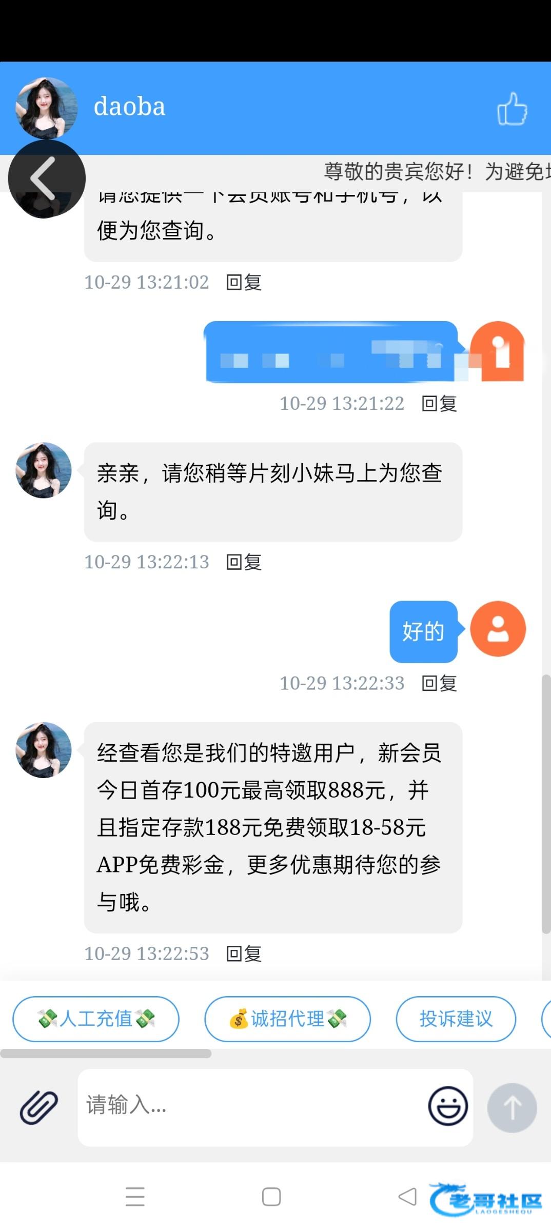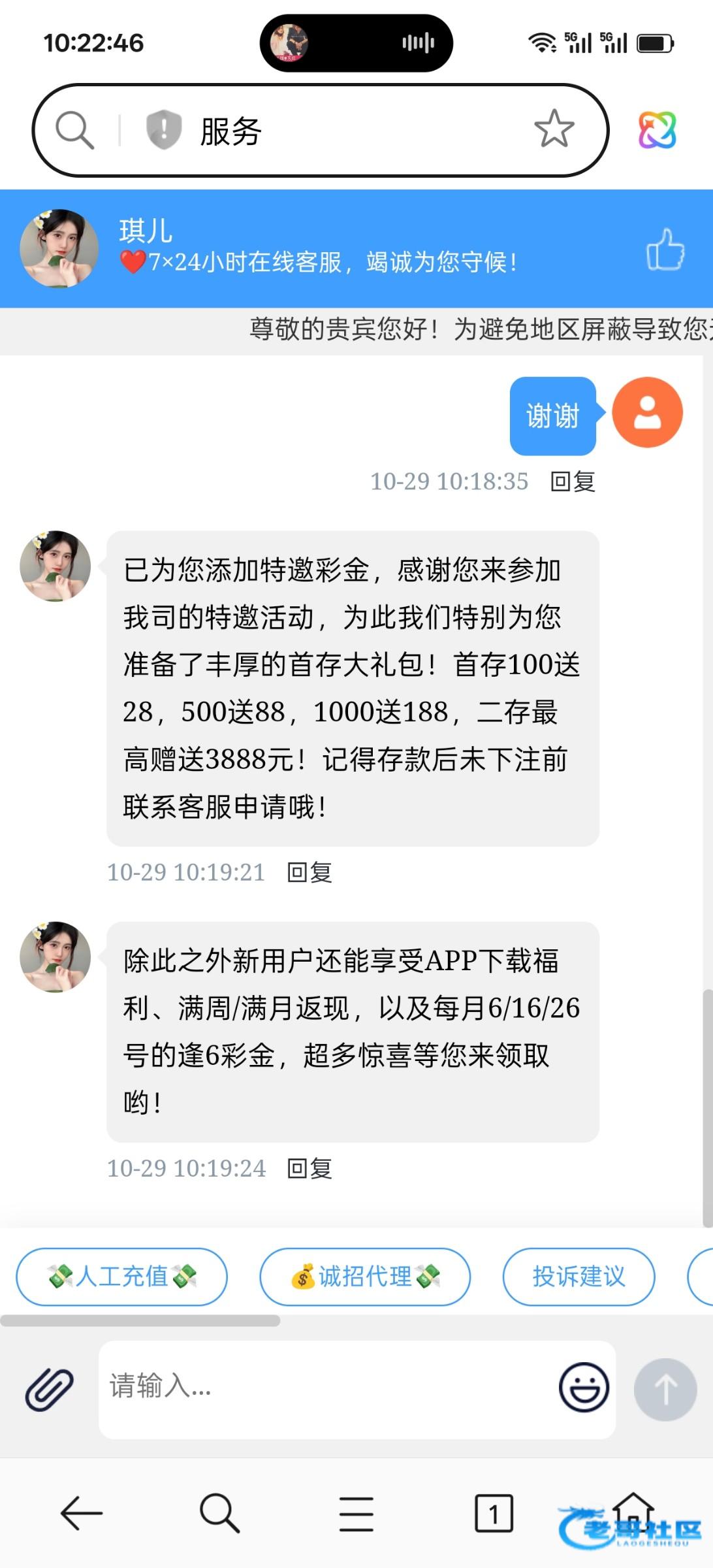 10-29 13:19:19亲,经查看本期特邀彩金已经赠送没有名额了呢,由于您是特邀会员,您可以参与首存100送28, 188送56,1000送188元哦!