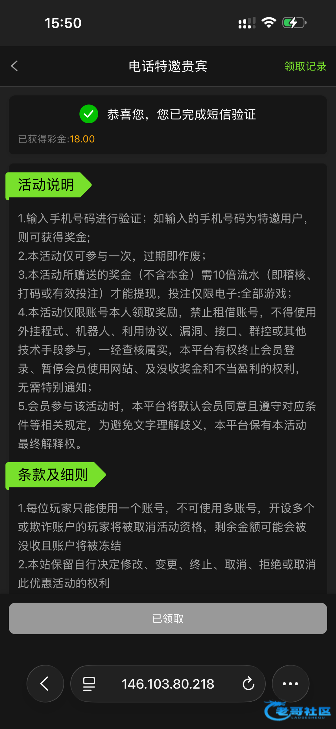 隔三差五打电话。显示老子提前绑定手机号不让领