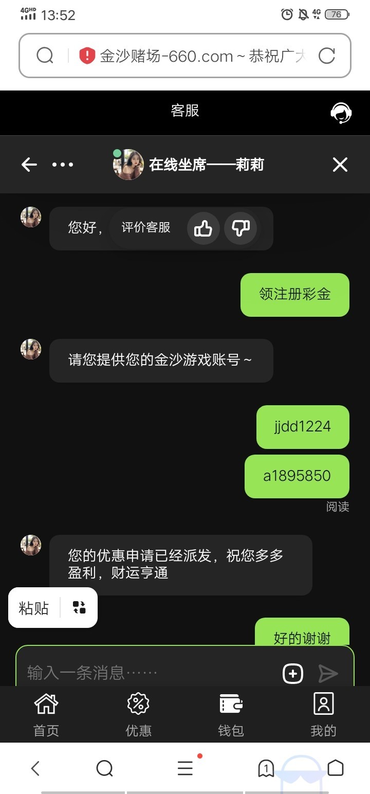 找客服领注册彩金就领到了