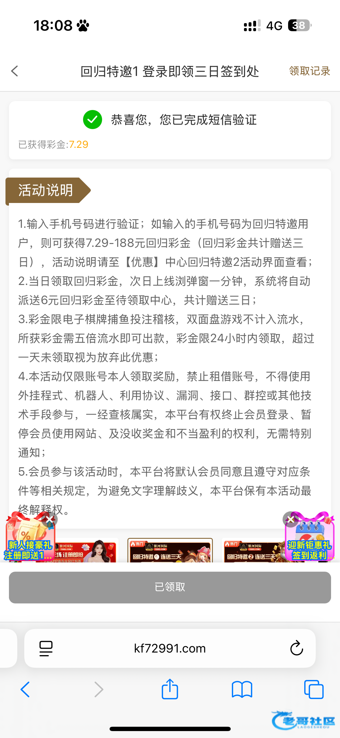你们之前经过回归彩金三天的 还可以继续领 我之前打到200充值50出了200 然后昨天又去领了没打出来今天领6块打出来100到账了 这次没充值直接秒到