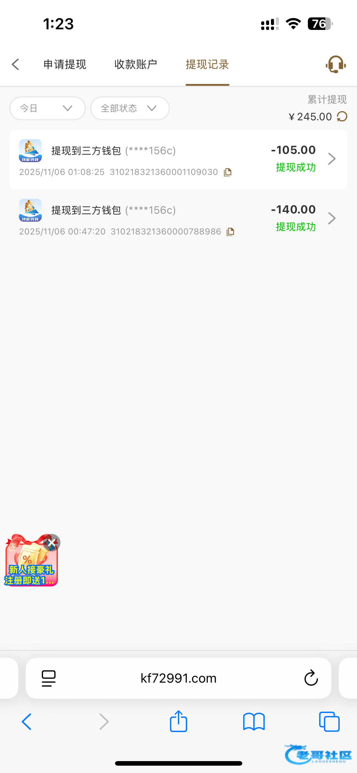 提了220 7块打到200提现让冲50