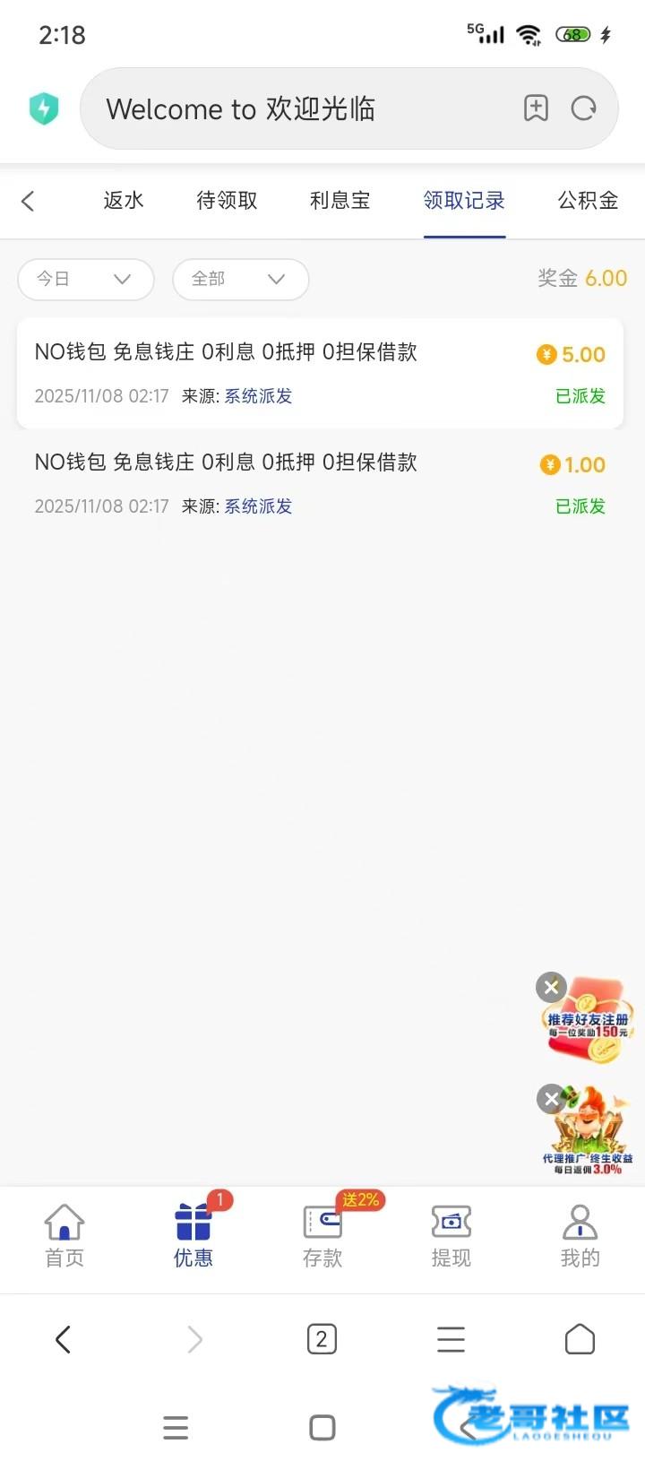 这个大家应该都有吧,充值过首充50+50的,好像no钱包维护给了6,官网5400.com
