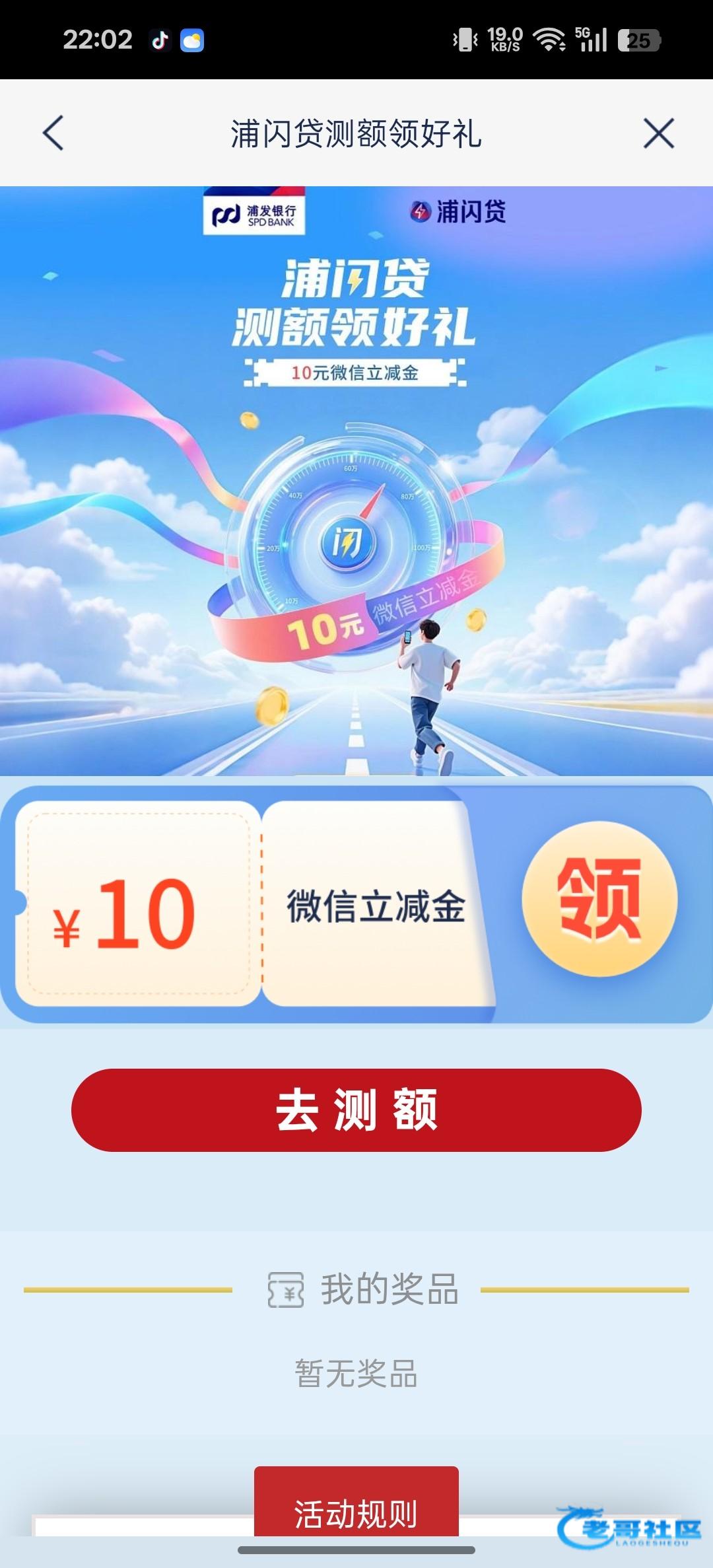 有浦发银行的去app搜索测额,然后点击测额,输个验证码然后扫脸一下就可以,通不通过都有10立减金,一分钟完成,具体看图
