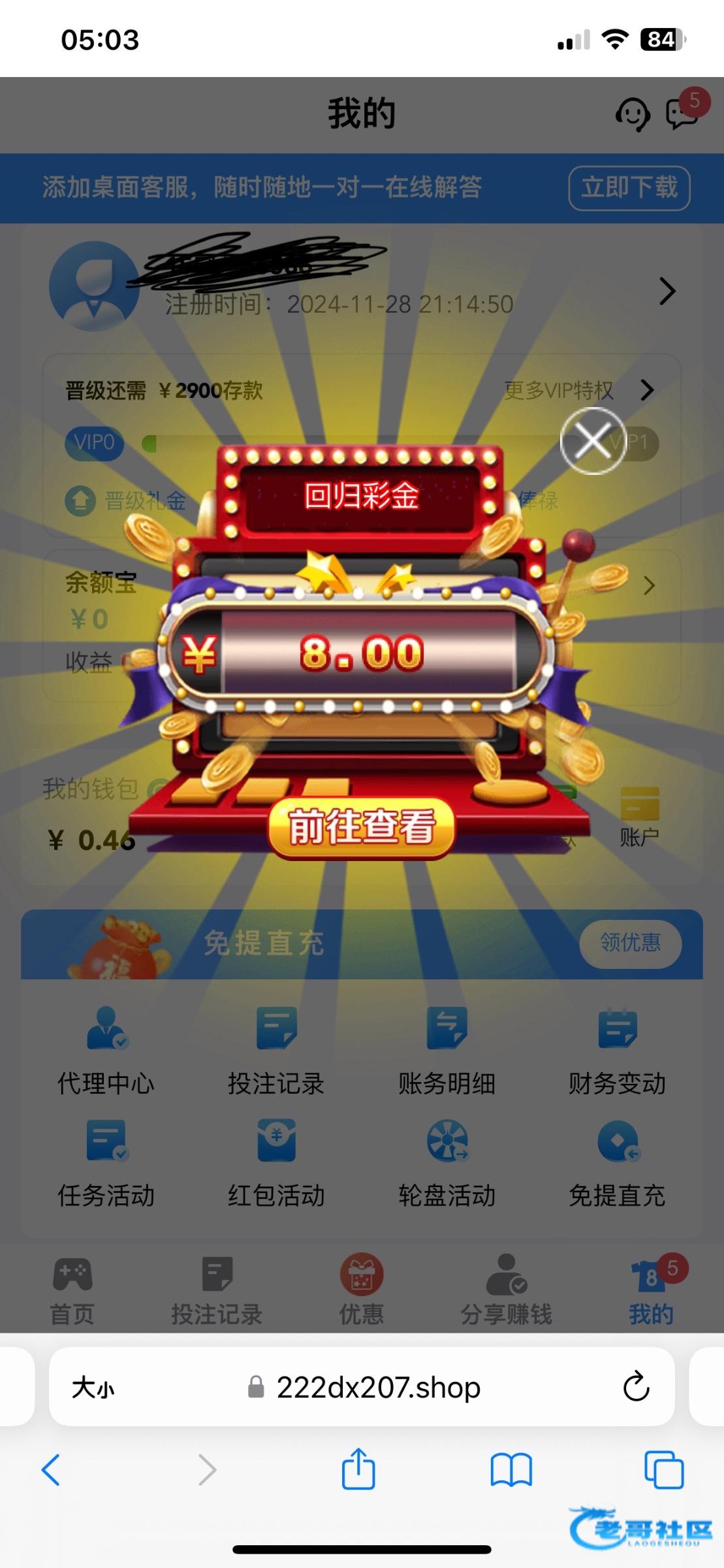 感谢 新普京以前充值过 10月份回了60彩金 题了300