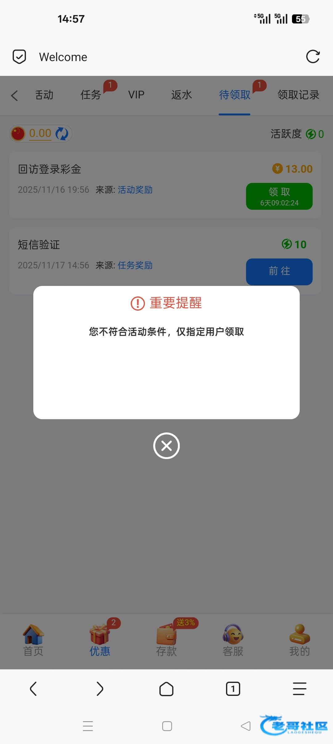 死妈台无敌了,2个号打电话过来,叫登录领取,居然不给领取