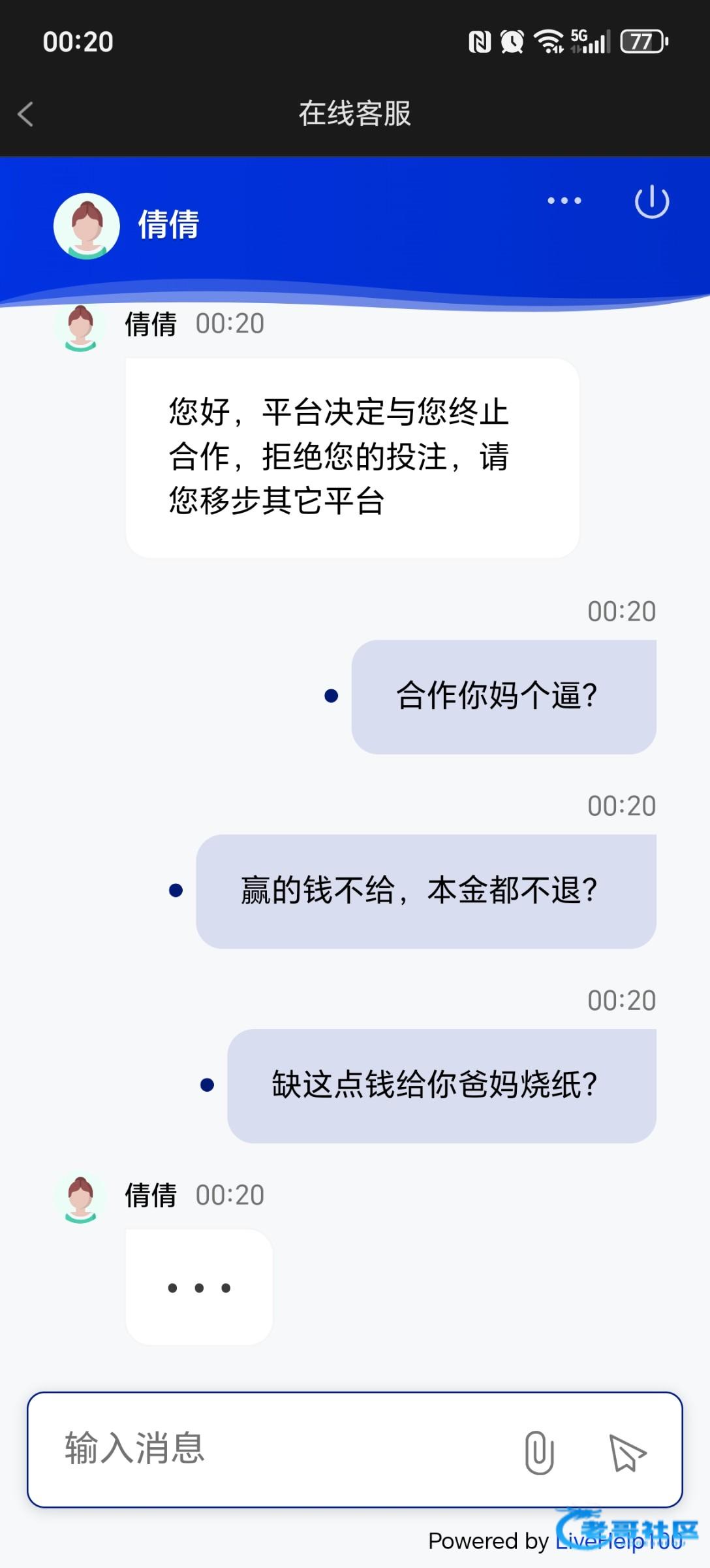 另外,这个平台从头到尾客服财务就一个人,就是这个叫倩倩的,一直自导自演装无辜的死人妖诈骗狗,各位老哥切记不要再上当。