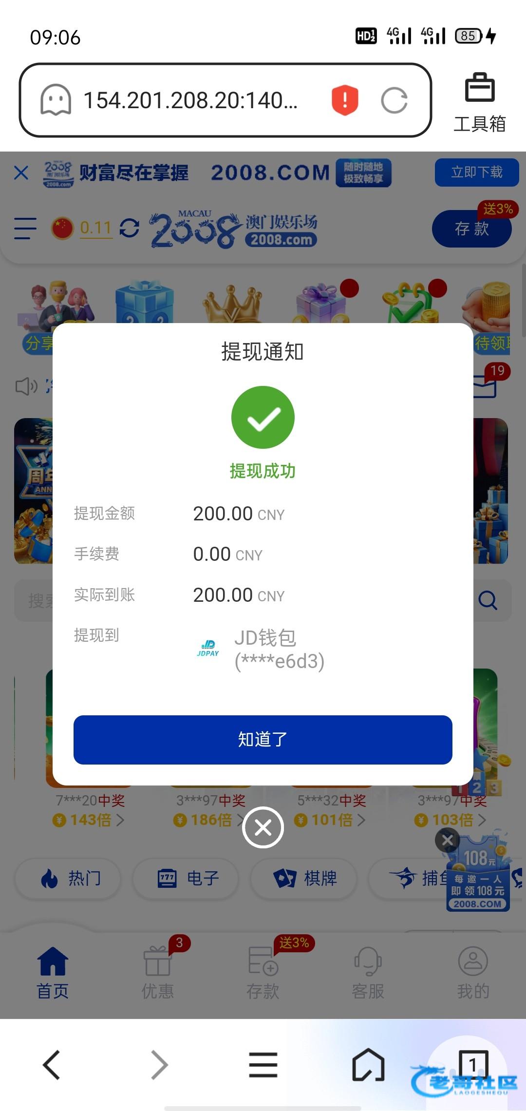这台子个人感觉2006有点水啊。昨晚打到一把应该乘胜追击的.提现了,反手就充了别的平台,反手10分钟又没了,真可惜