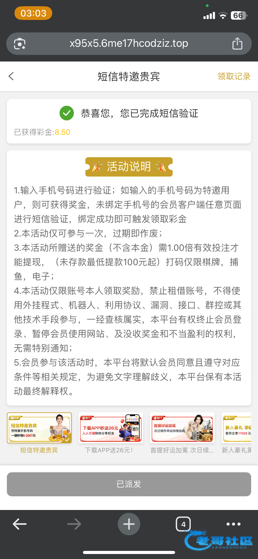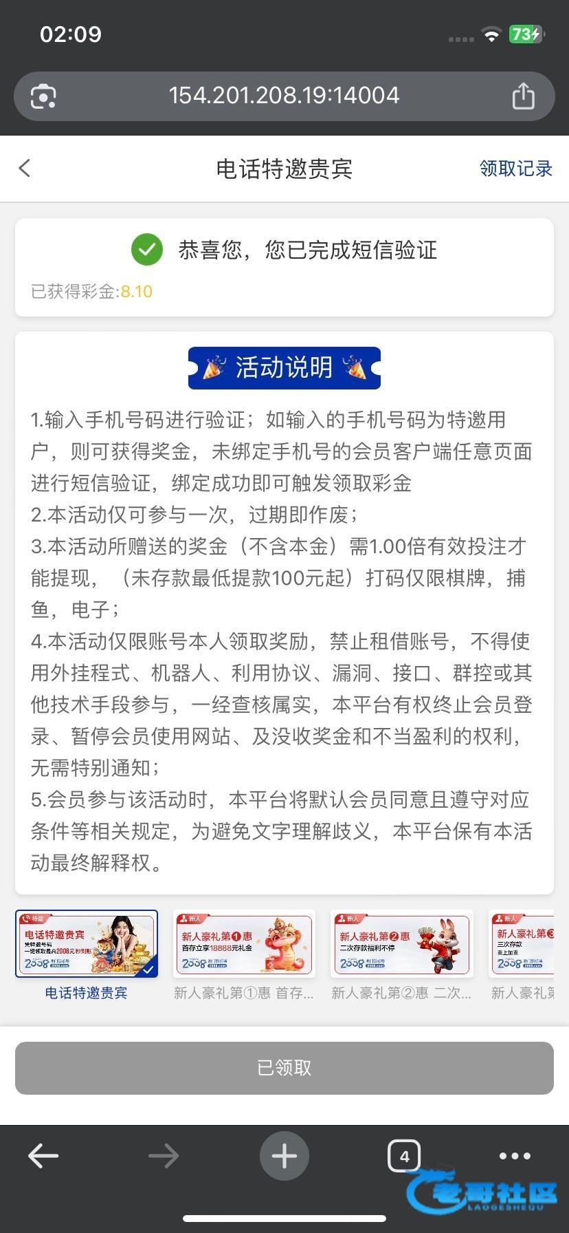 2005系列电话特邀以前注册的领取不了的现在可以领取了 我以前也是活动开始后绑定手机号才可以领取 网址2005.vip
