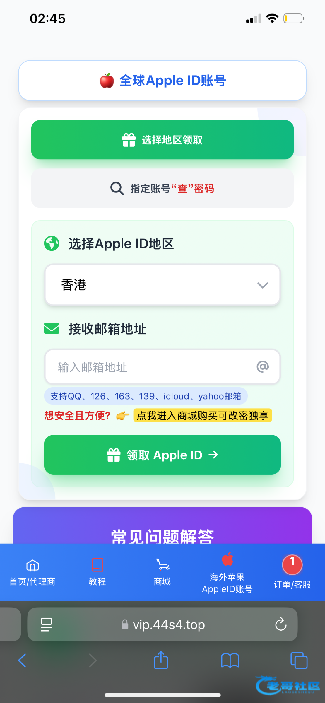 没有苹果lD的可以在这或者在这里面有外国lD。 1天五次。https://vip.44s4.top/pages/appleid