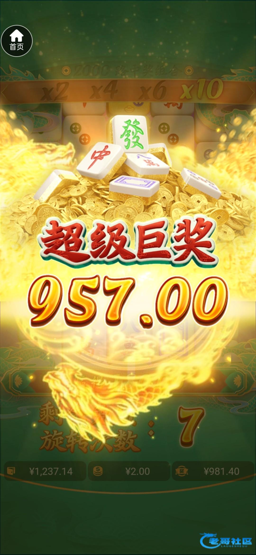 也没多少倍,上面那一把10次免费爆完好像才1500多。800倍不到。你不要再一个平台死磕懂吧。我都是找新台玩一个月,控分了我就找别的平台玩了。说真的我拉的不大都是2-4-6块拉,几百倍是经常爆的。只是我控制不了自己去提现,因为我提现不是整数。老是感觉少了点感觉,最后就输回去了。