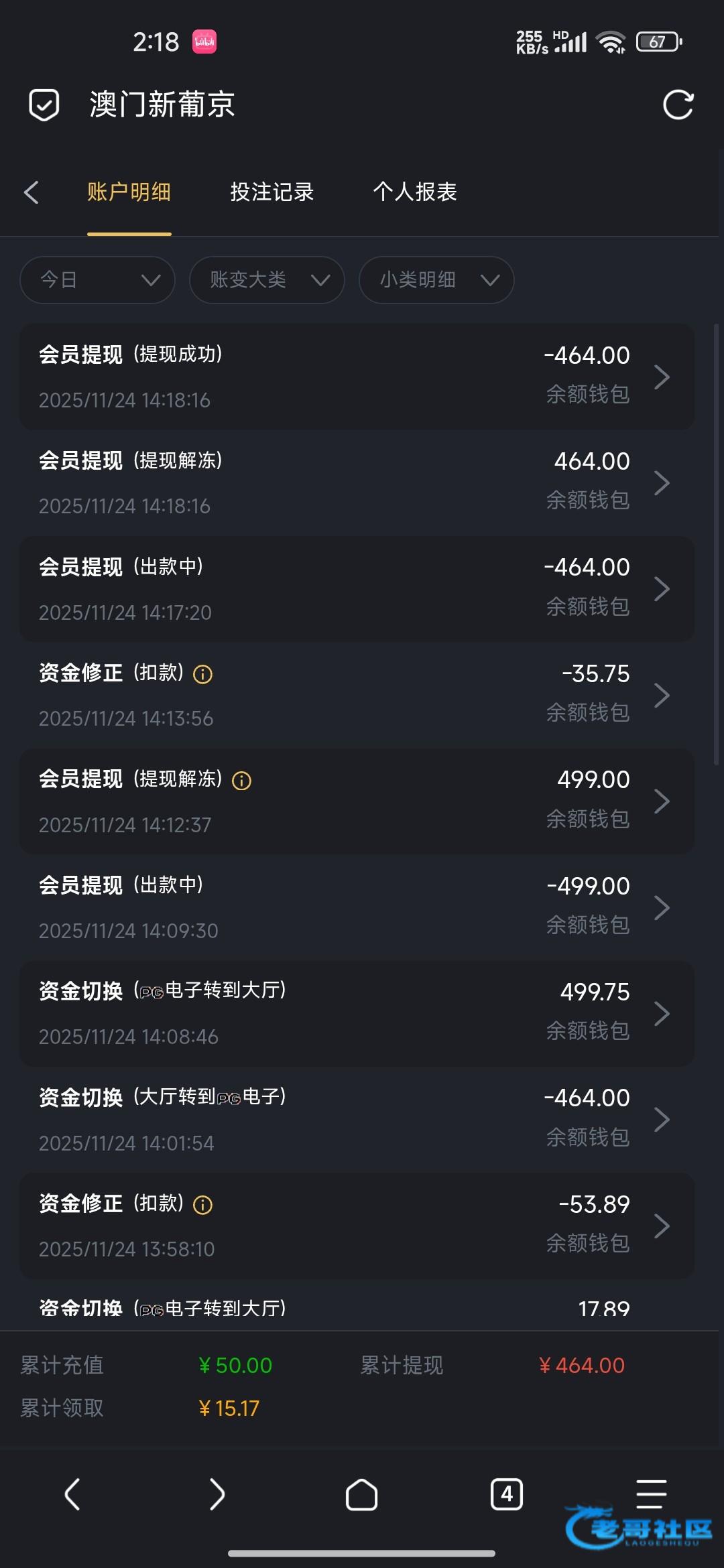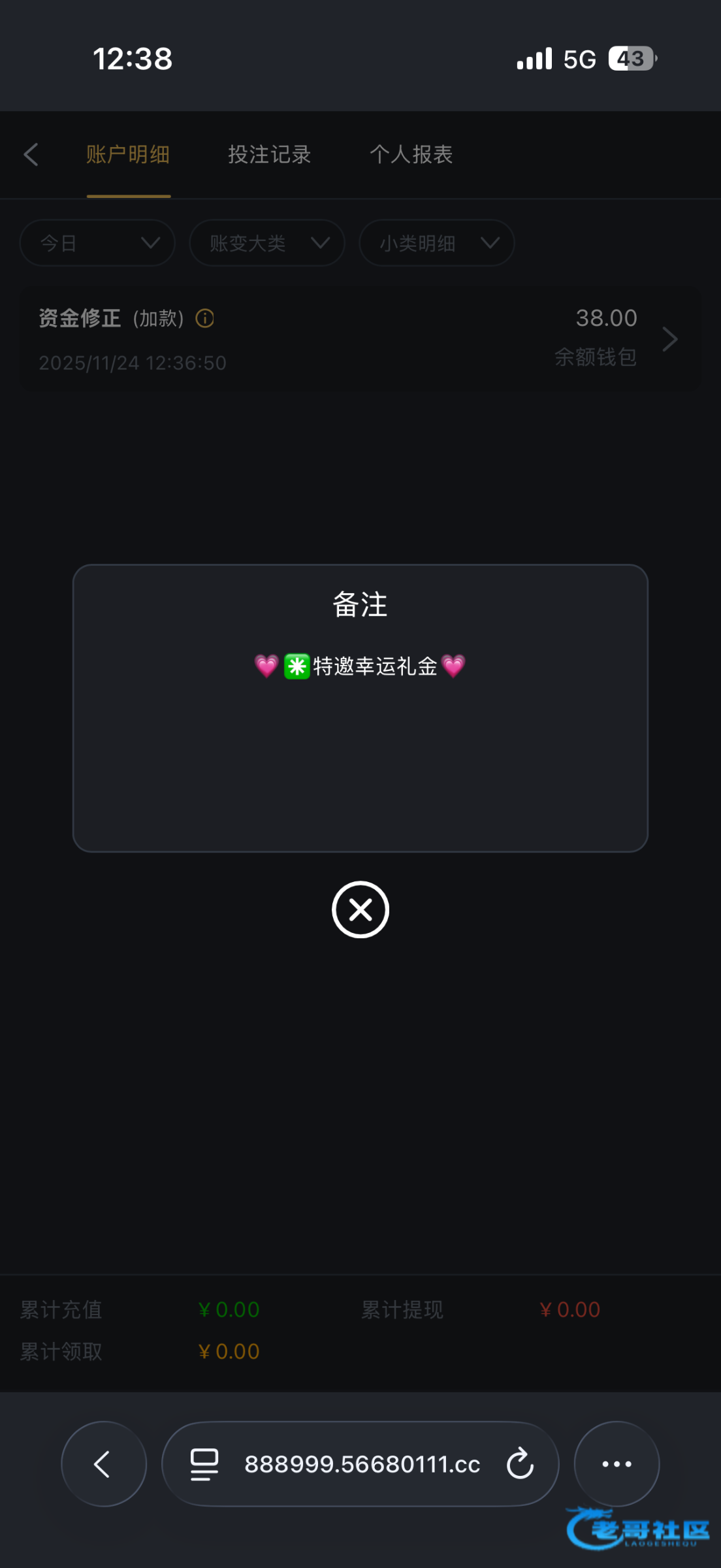 @不可能一次不中 ,一个样。前几天11月10多号的时候红了5000没 收.这几天领彩金一打一个挂一打一个挂