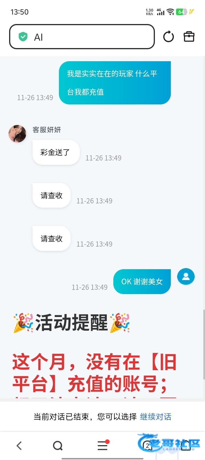 给我了 但活动改了 要3倍打码