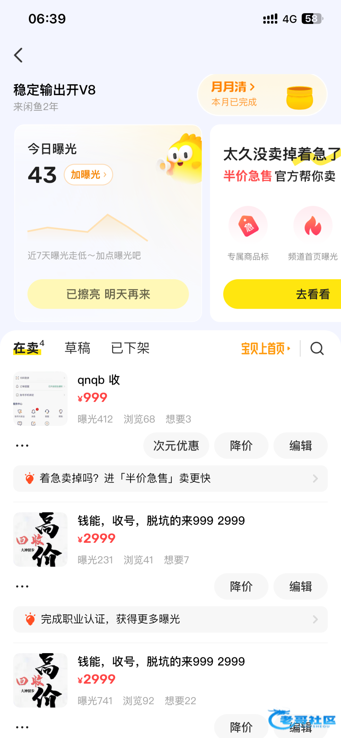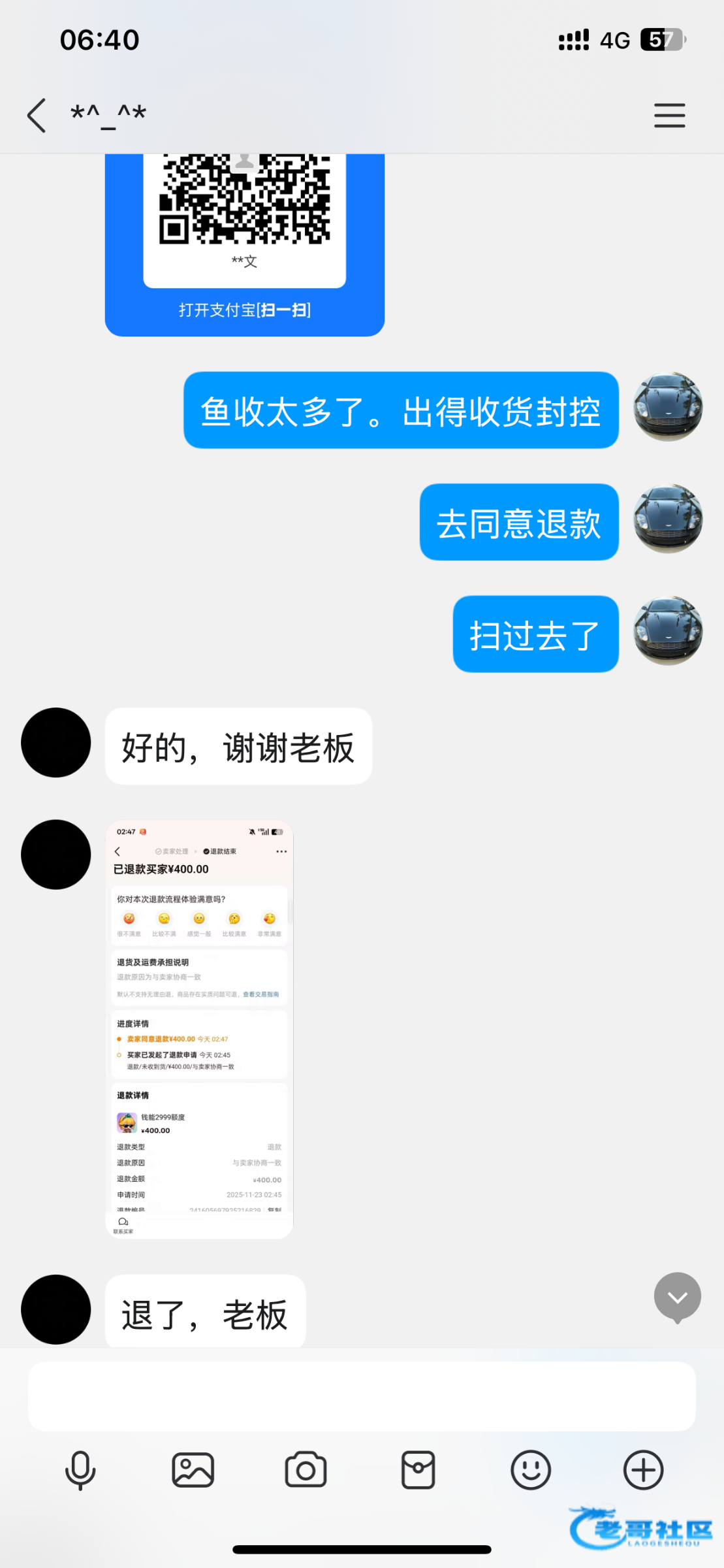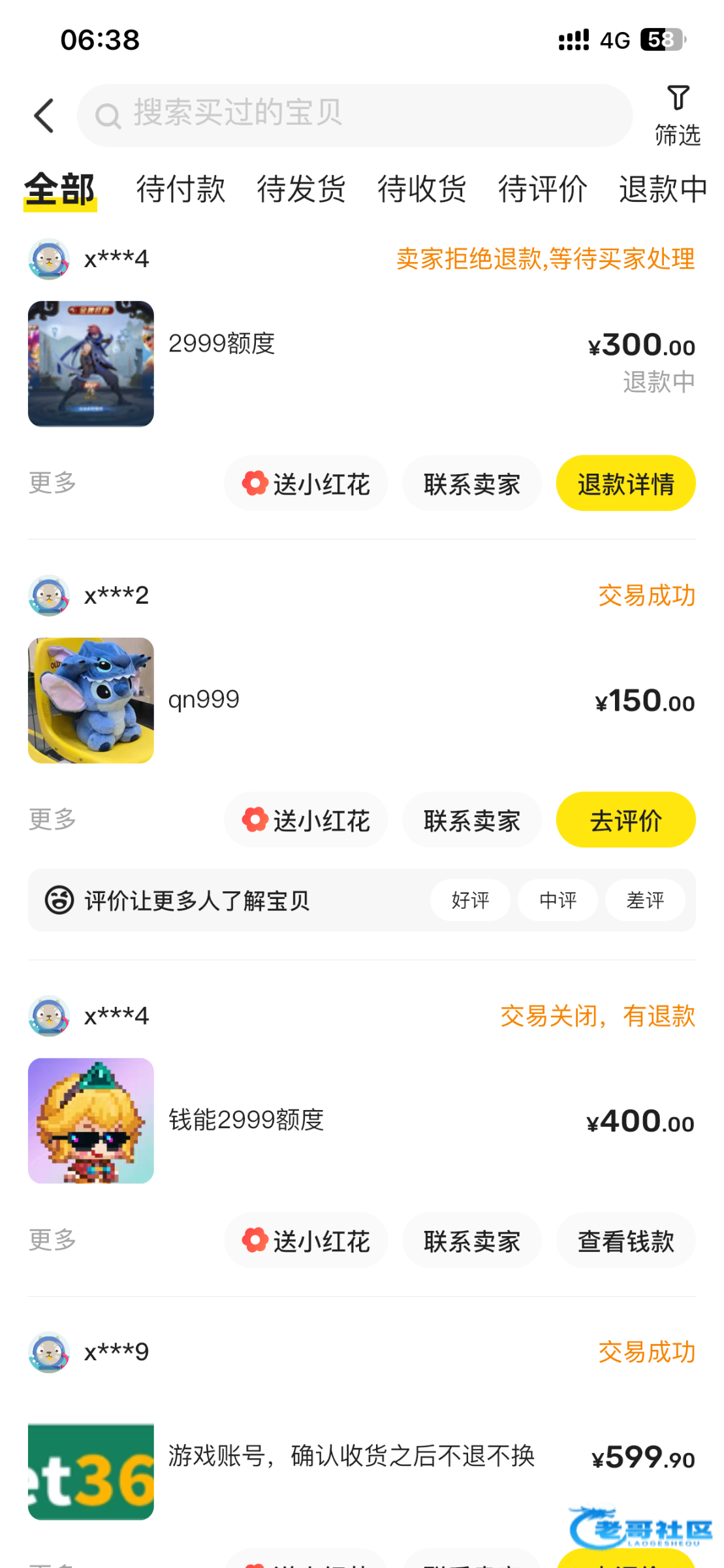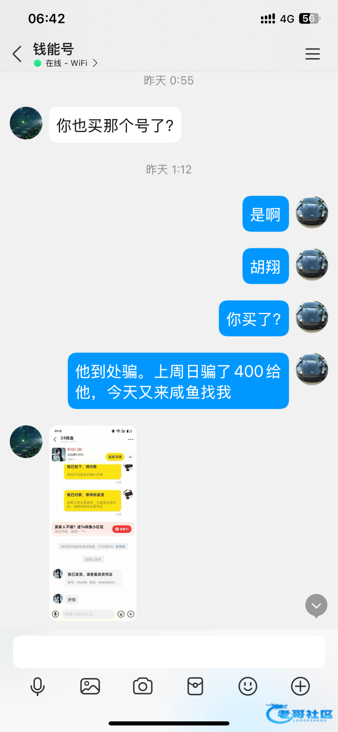 周日咸鱼挂单验号后,支付宝转400第二天找回,周三过来咸鱼装卖号引诱,又拍300未验号马上点发货决绝退款。大家注意了不要被骗。