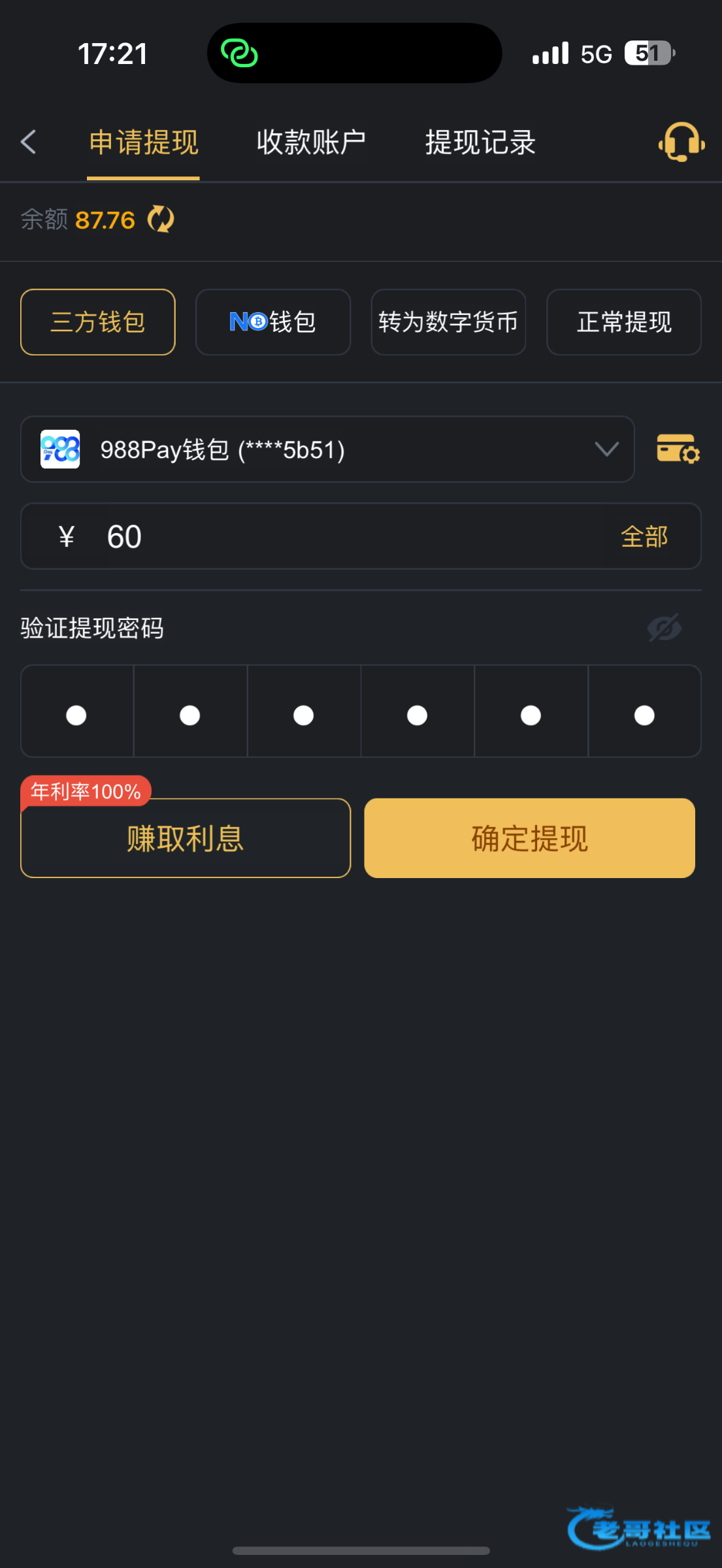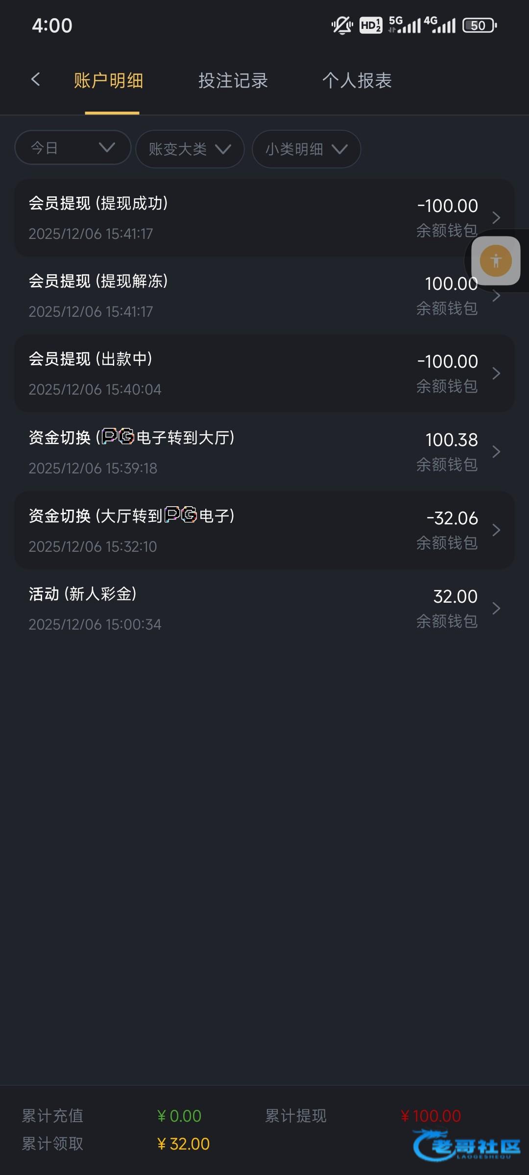 领了42,充了一百提了250