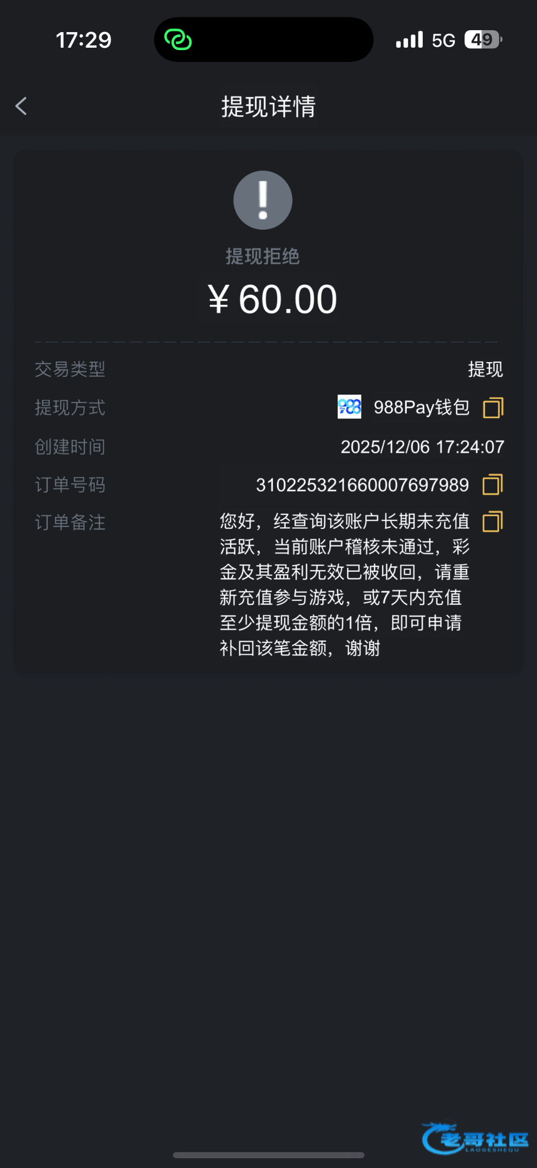 可能收不了老哥