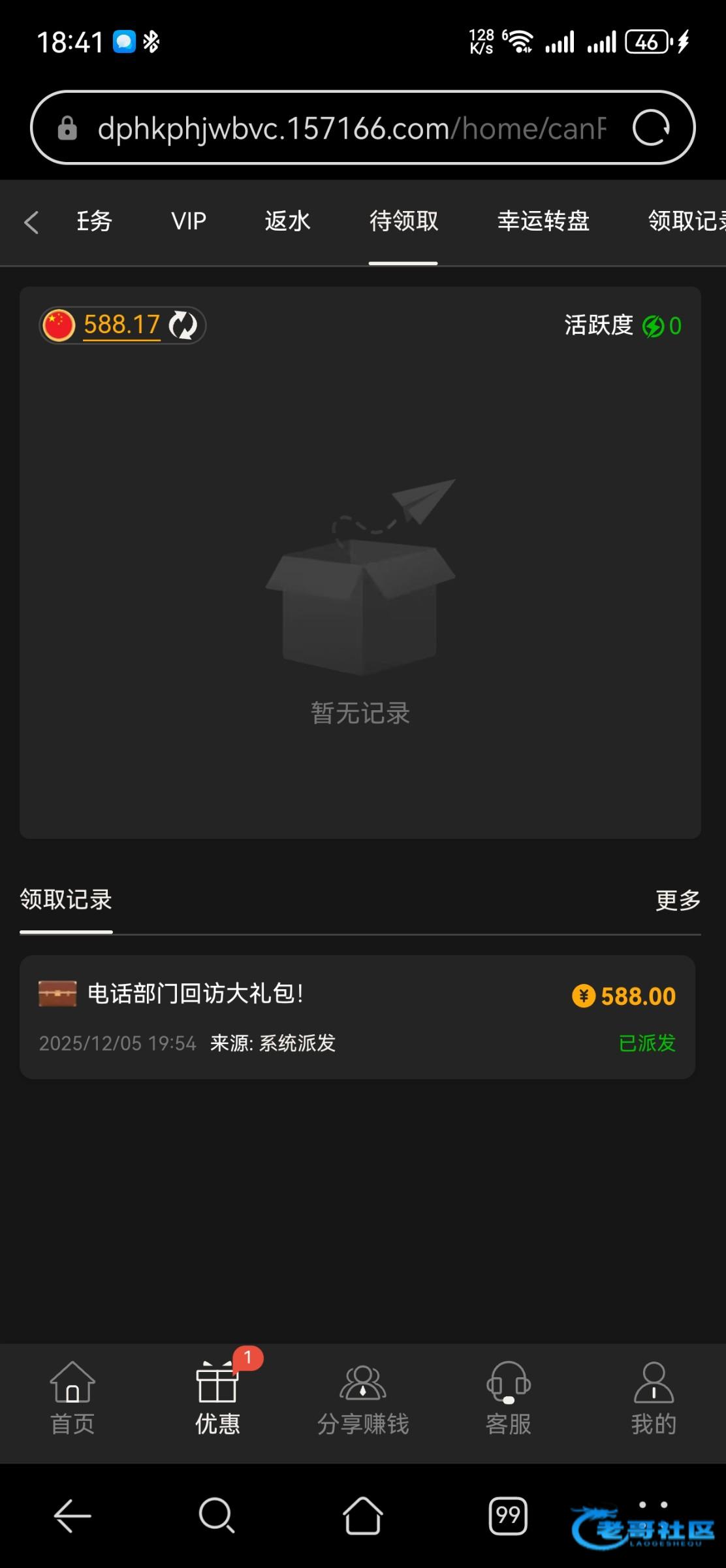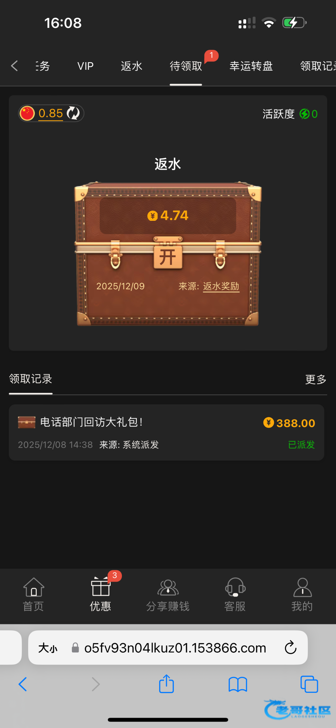 看到帖子上号看了一下真的有388,电子没什么水打够一杯流水就提现了