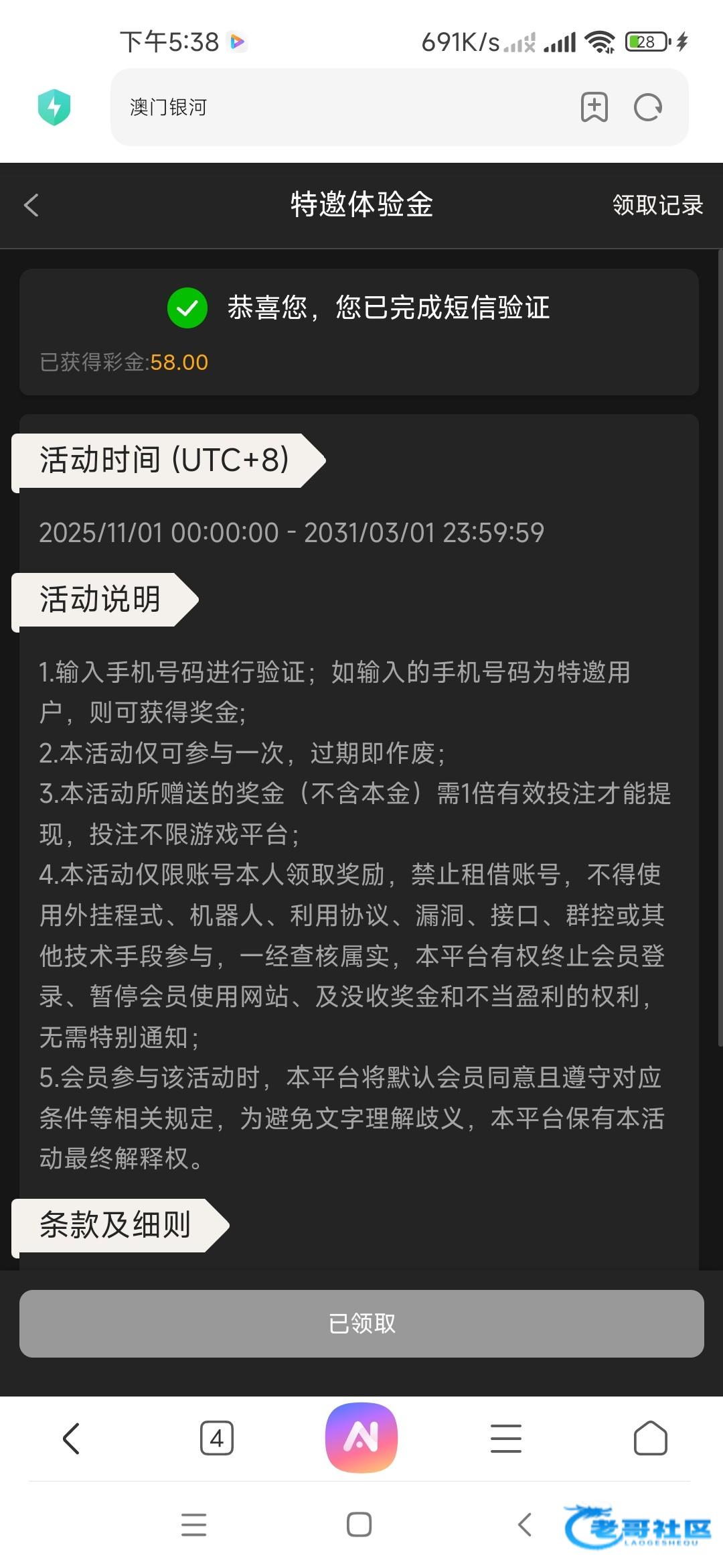 羞答答的玫瑰 ▶ 羞答答的玫瑰 还有一个不能领取了 领取了一个号 充值100提了360 5天前