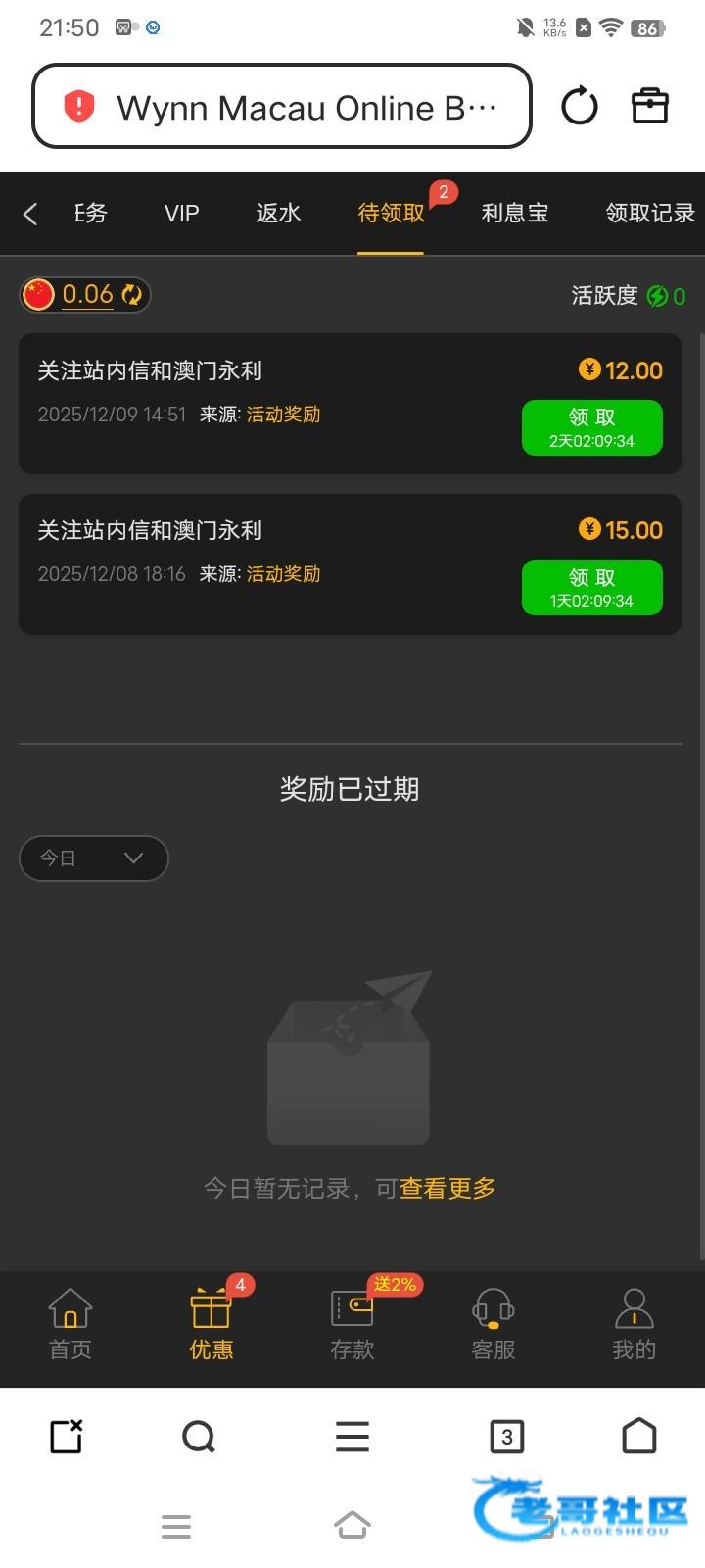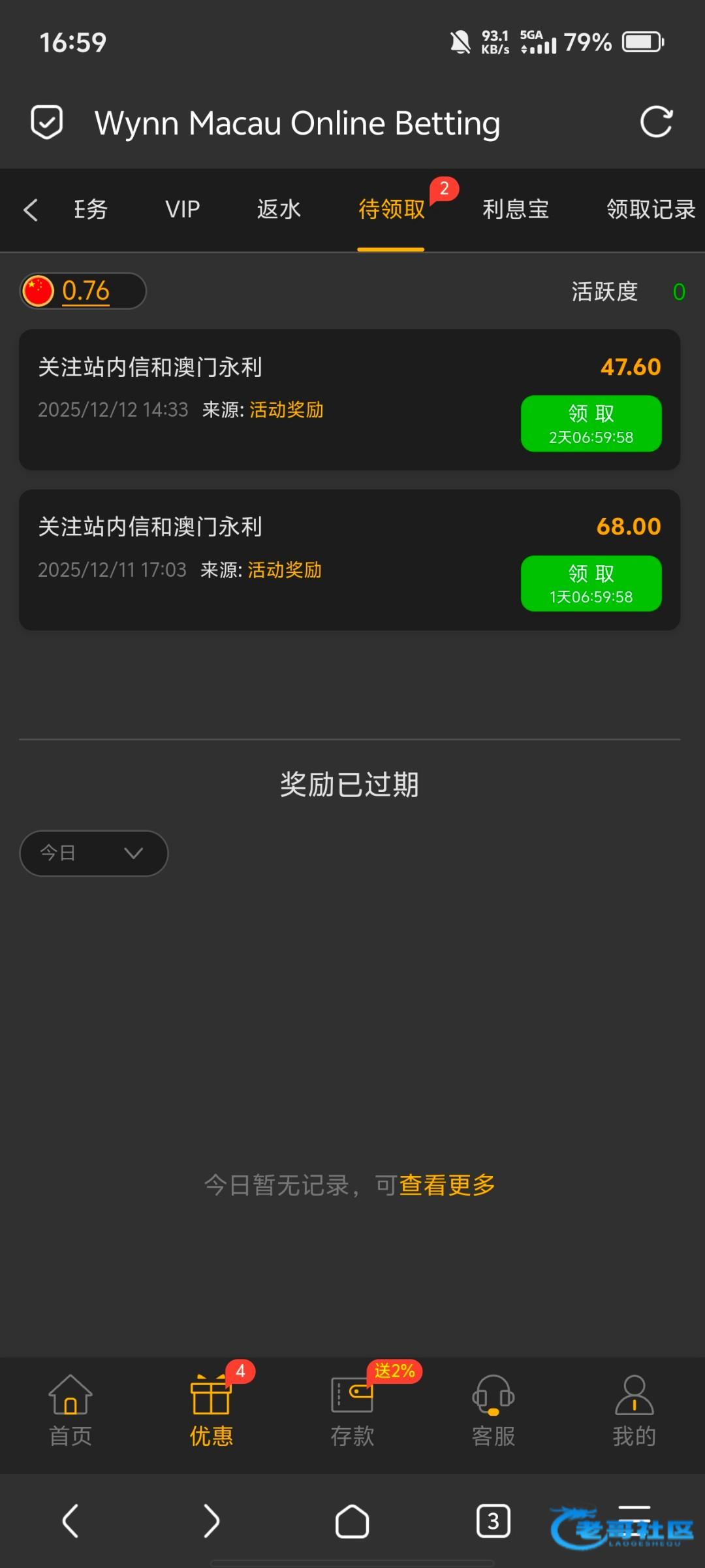 昨天没有,今天领了68,应该是能领3天