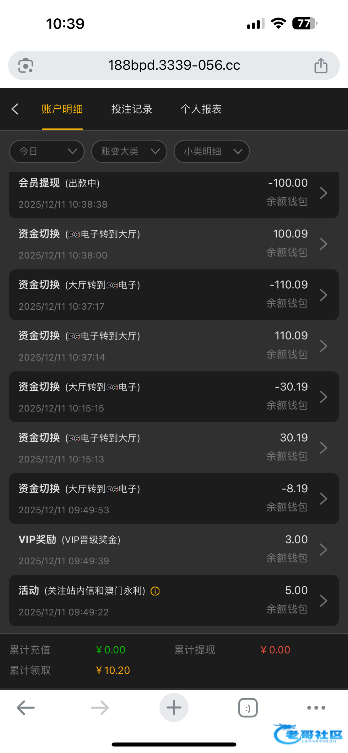 这几天这个台子输了三千多,没看到送