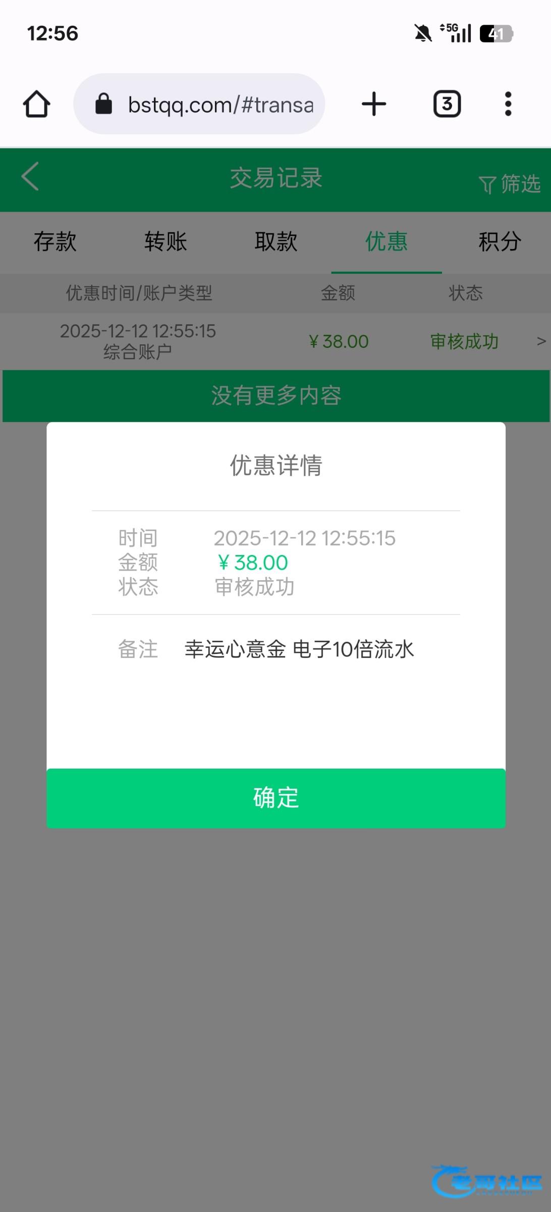 头两天注册的号没充值过中午接电话说送彩金,登录看到送38 10倍流水 bstqq.com