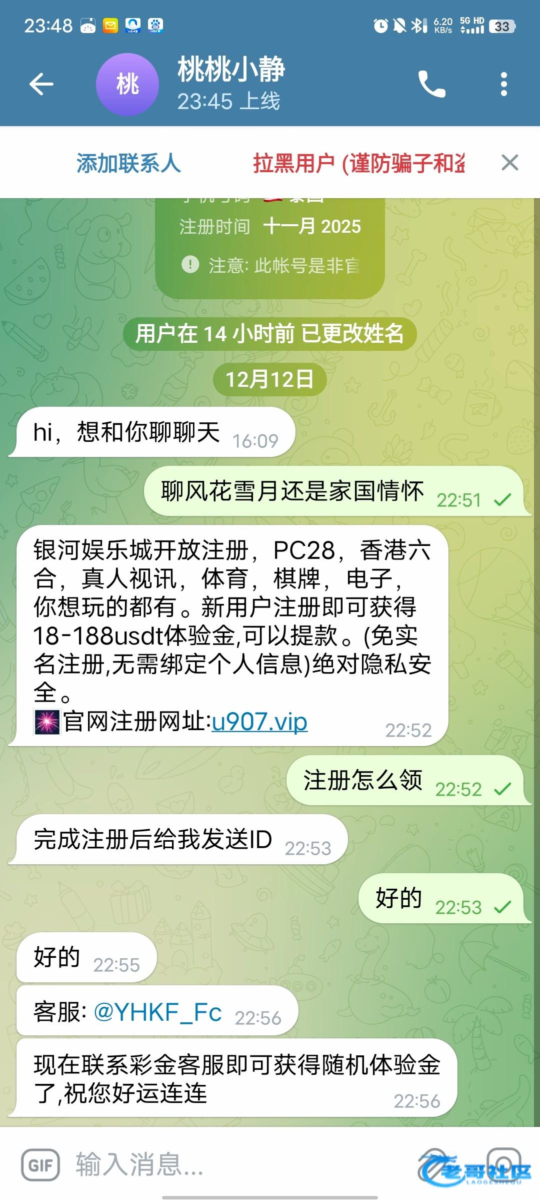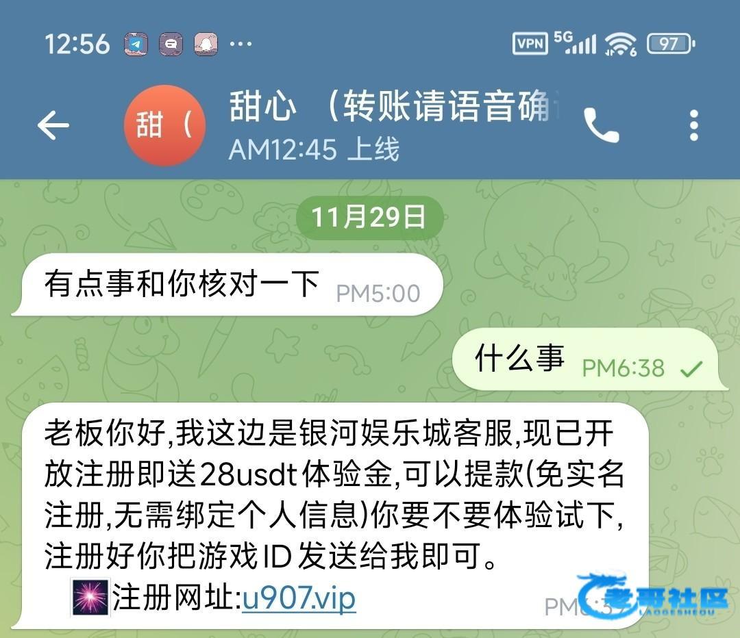飞机加客服@YHKF_Fc 然后说注册彩金 注册之后发ID给她送18U 12倍水不限制游戏 最高只能提50U 客服说多赢也可以全部提但是要充值一笔 最好白嫖充不充自愿 我打出来了 怕黑输到50U提了几分钟到了网址 http://u907.vip。