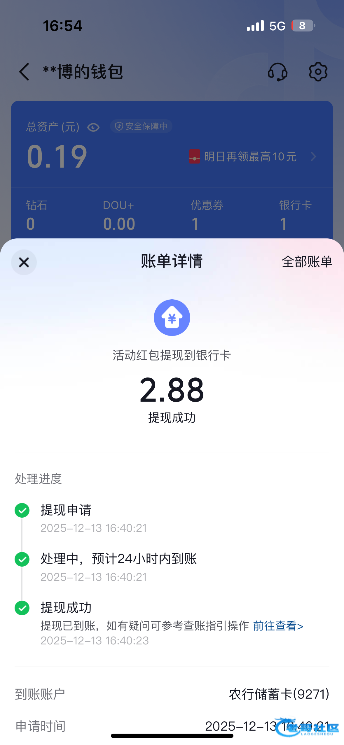 感谢老哥 领到4.88 稳