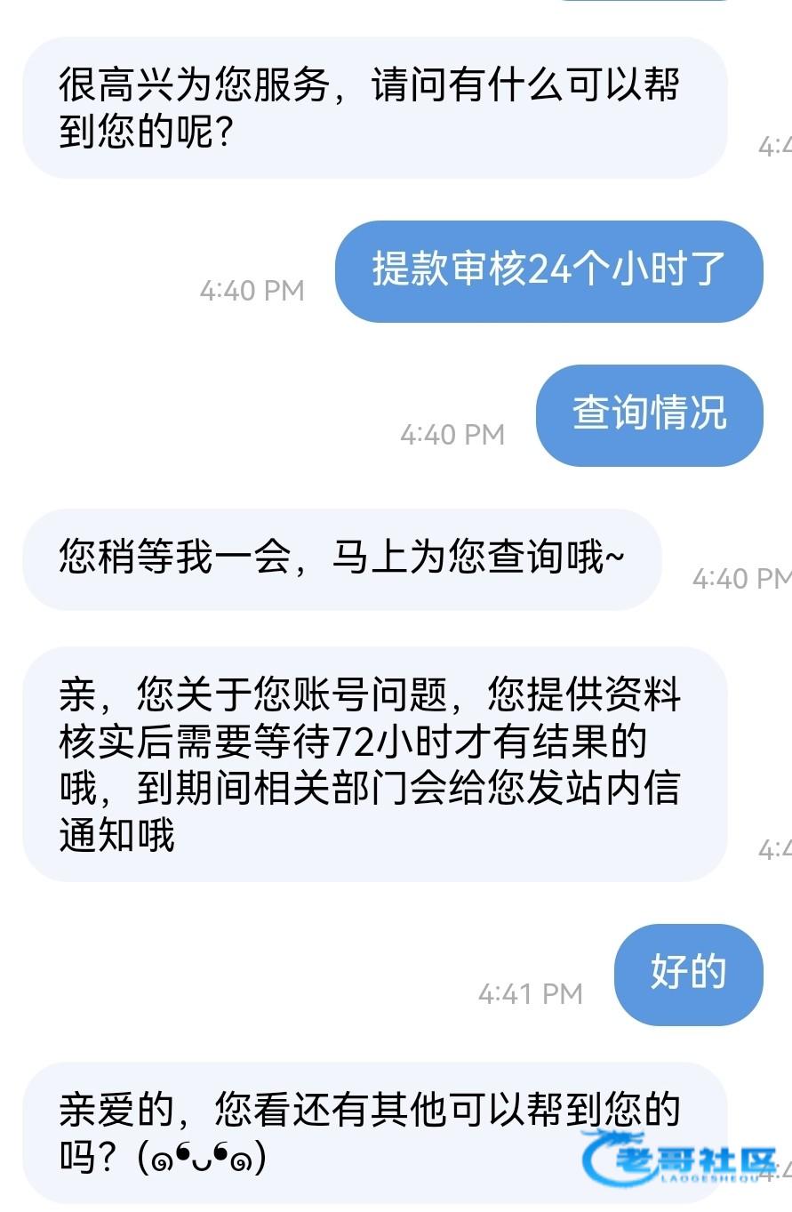 老哥们 我问一问 我雷火提现要我给手持 我发了 然后客服告诉我要审核72个小时 现在已经审核24小时了 请问还有机会到吗 有兄弟我和一样的情况吗