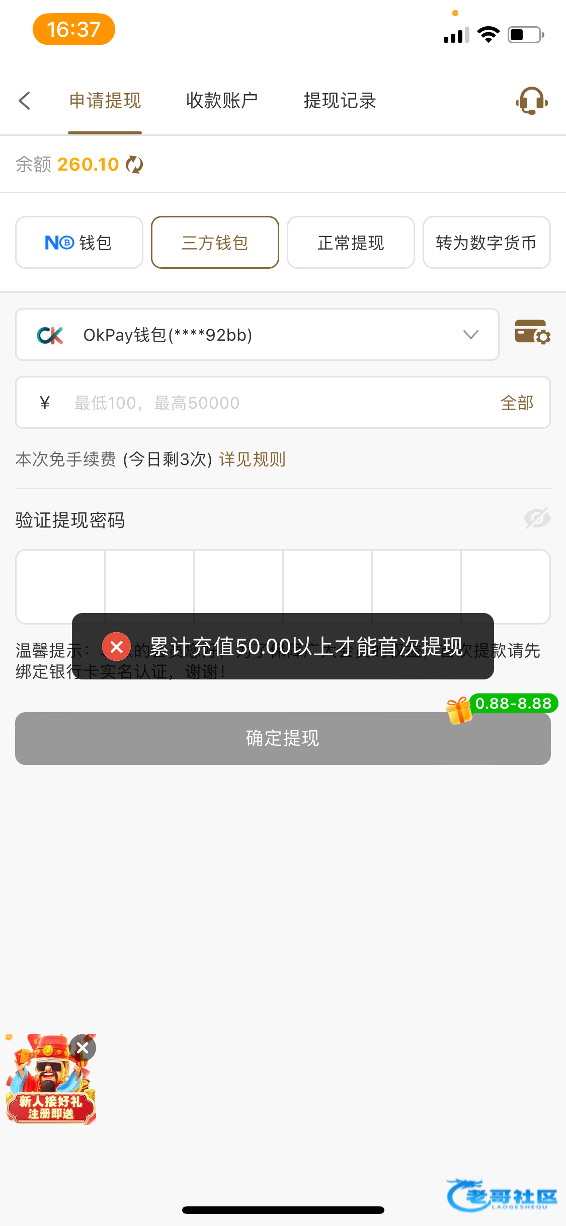明天应该就会有杂种发特邀彩金贴了